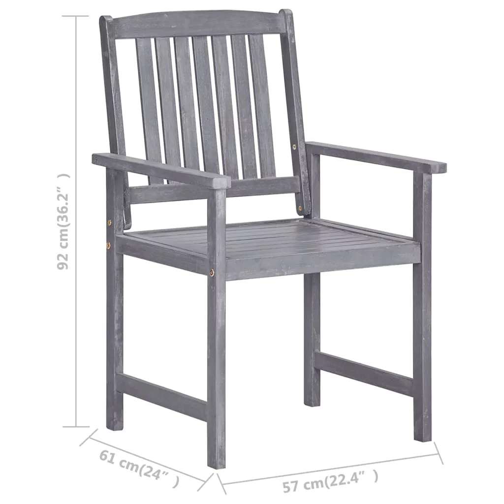 Ez a kerti tömör akácfából, egy sűrű erezetű keményfából készült szürke antikolt felülettel. A tömör akácfa elég erős, hogy elbírja a ránehezedő súlyt, és időtálló is. Ez a fa székszett stabil, tartós és időjárásálló. Emellett a szék felülete nedves ruhával könnyen tisztítható. A mellékelt párnák extra kényelmet nyújtanak.