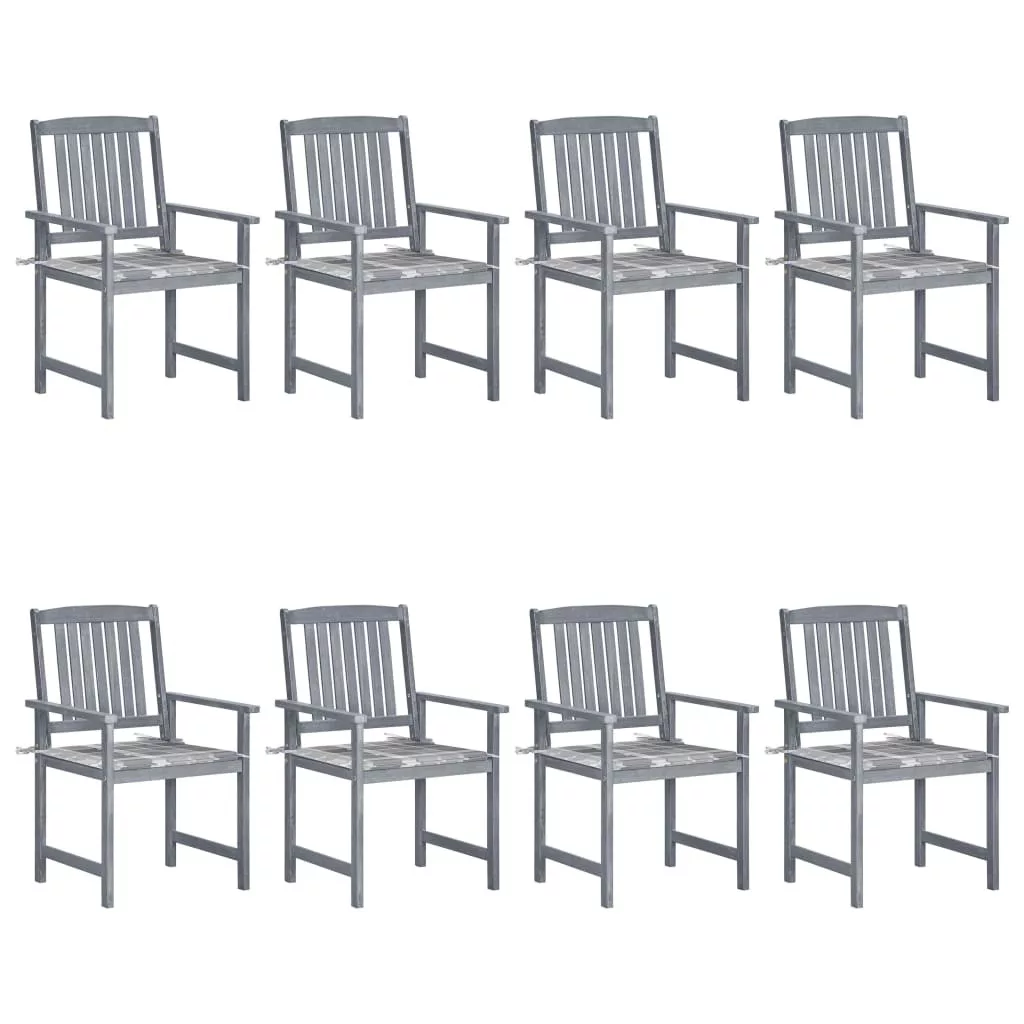 Ez a kerti tömör akácfából, egy sűrű erezetű keményfából készült szürke antikolt felülettel. A tömör akácfa elég erős, hogy elbírja a ránehezedő súlyt, és időtálló is. Ez a fa székszett stabil, tartós és időjárásálló. Emellett a szék felülete nedves ruhával könnyen tisztítható. A mellékelt párnák extra kényelmet nyújtanak.