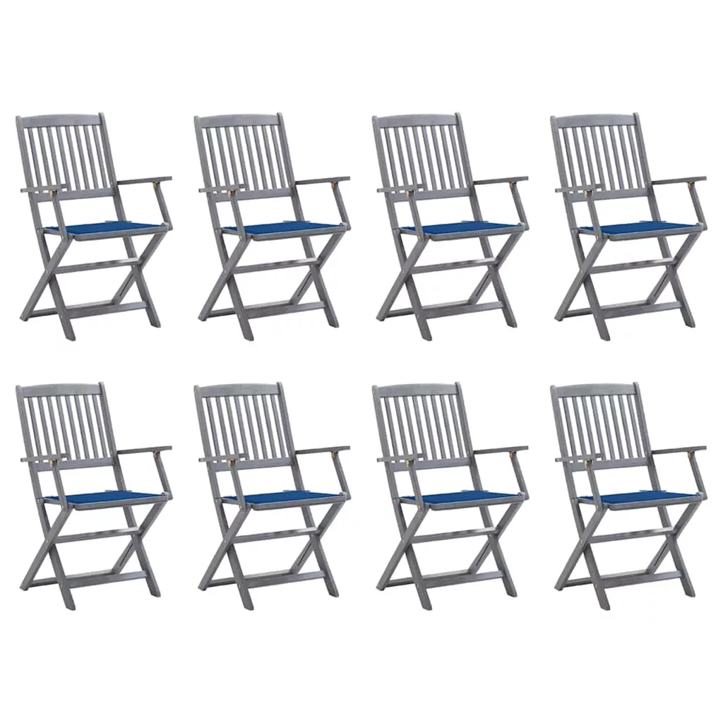 Modern stílusú, párnás fa étkezőszékszettünk természetes stílust csempész a kertjébe, teraszára vagy verandájára. Ez az összecsukható székgarnitúra nagyszerű választás étkezésekhez.