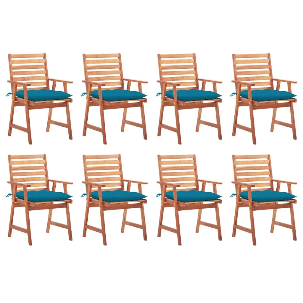 Párnával ellátott modern fa étkezőszékszettünk természetes stílust csempész a kertjébe, teraszára vagy verandájára. Ez a fa székszett nagyszerű választás a szabadtéri étkezéshez.