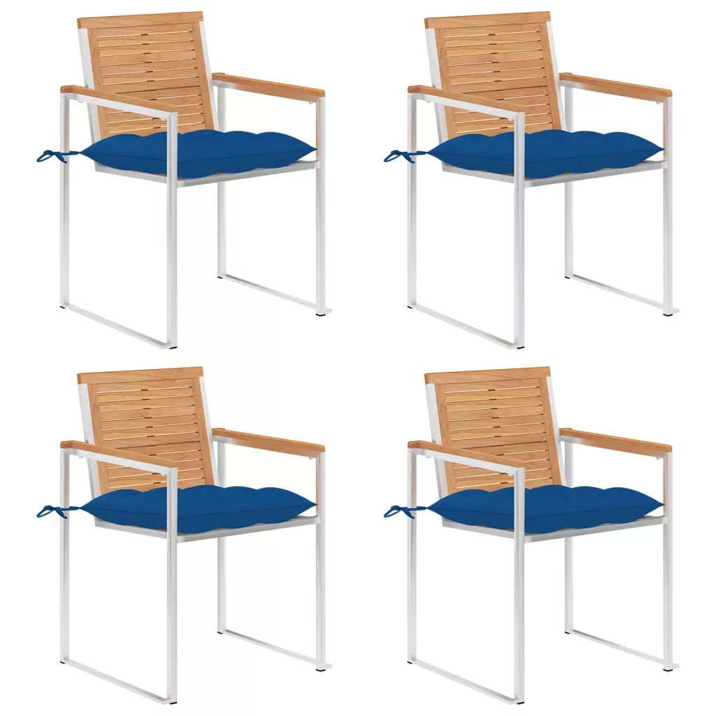 Ez a rendkívül strapabíró kemény tíkfából készült bútordarab természetesen, illetve kemencében volt szárítva, majd finomra lett csiszolva az elegáns megjelenés érdekében. A tíkfa szilárd és ellenáll az időjárás viszontagságainak, ezért kiválóan alkalmas kültéri használatra, más fatípusokkal szemben. A tíkfa egy kitűnő választás, ha hosszú időn keresztül tartó kerti bútort szeretne vásárolni. A minőségi rozsdamentes acélváz tartóssá, rozsdaállóvá és stabillá teszi. A mellékelt párnák igazán praktikus kiegészítők, ráadásul dekoratív funkciójuk is van. Dőljön hátra egy kellemes kültéri vacsorához, vagy egyszerűen csak pihenjen és élvezze a természetet ezzel a klasszikus kerti székgarnitúrával.