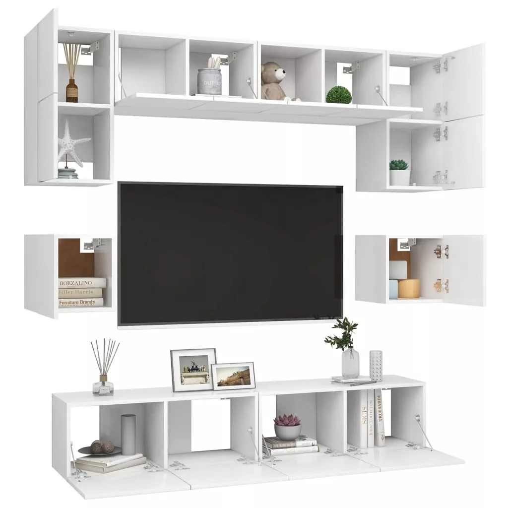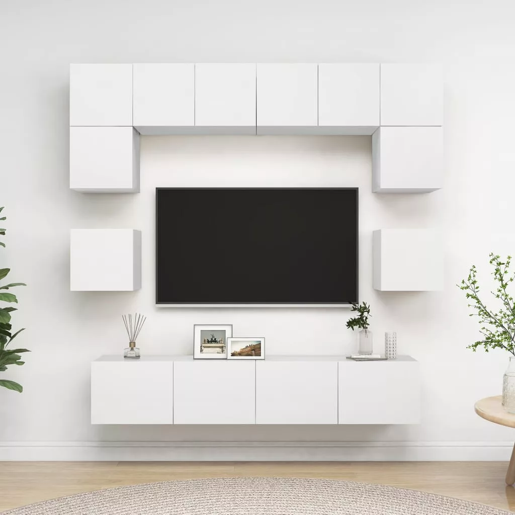 A különféle tárgyak elrendezésére alkalmas, bőséges tárolókapacitással ellátott függő TV-szekrényszett biztosan praktikus és szemet gyönyörködtető kiegészítője lesz otthonának.