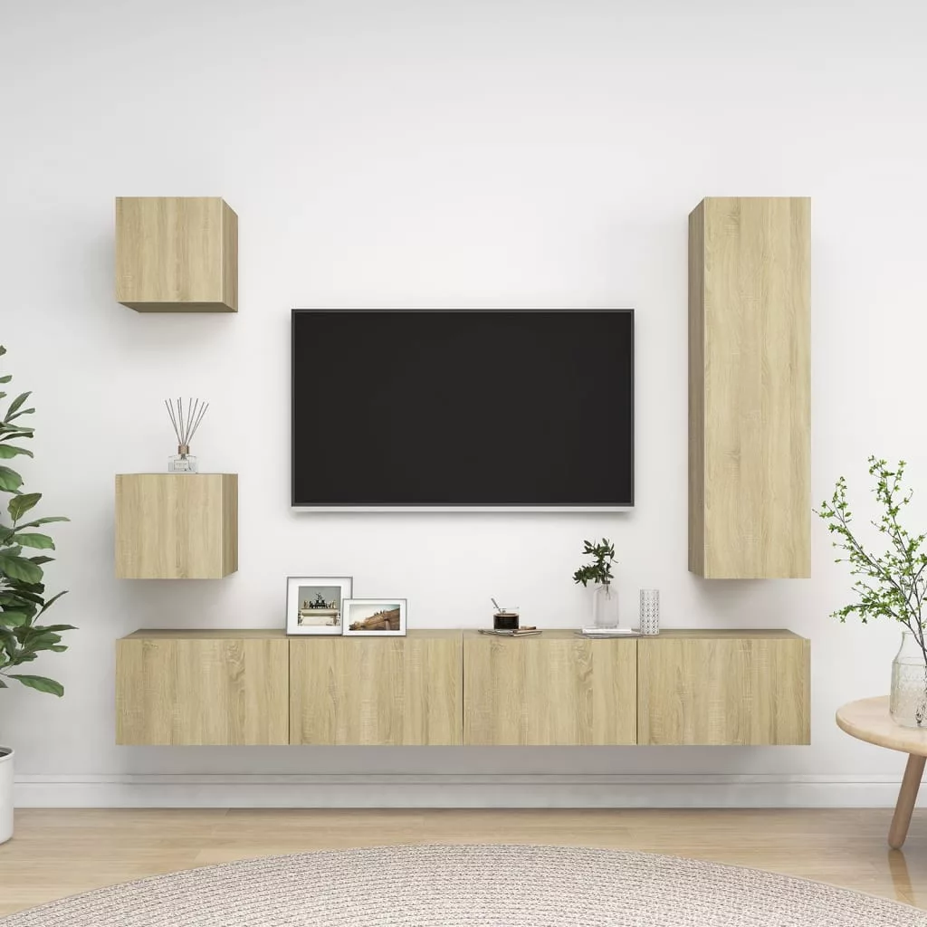 A különféle tárgyak elrendezésére alkalmas, bőséges tárolókapacitással ellátott függő TV-szekrényszett biztosan praktikus és szemet gyönyörködtető kiegészítője lesz otthonának.
