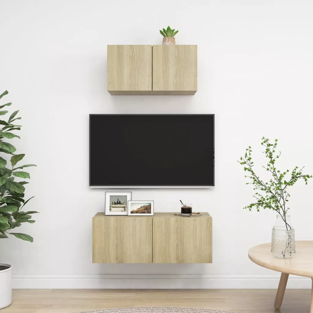 A különféle tárgyak elrendezésére alkalmas, bőséges tárolókapacitással ellátott függő TV-szekrényszett biztosan praktikus és szemet gyönyörködtető kiegészítője lesz otthonának.