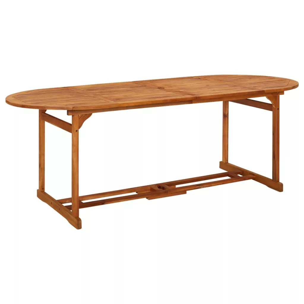 A kültéri garnitúra tömör akácfából, egy trópusokon honos keményfából készült, így időjárásálló, strapabíró és hosszú éveken keresztül használható. Olajjal kezelt felületének köszönhetően egy nedves ronggyal könnyedén tisztítható. Emellett a kültéri székek használaton kívül összecsukhatók, így helytakarékosan tárolhatók.