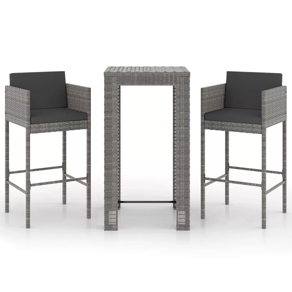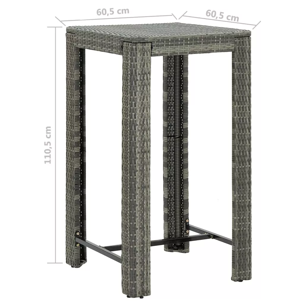 Az időjárásálló és vízálló polietilén rattanból készült kültéri bárszett könnyen tisztítható, strapabíró és mindennapi használatra alkalmas. A porszórt acélváznak köszönhetően az asztal és a székek masszívak és tartósak. Az asztallap ideális italok, ételek vagy dísztárgyak elhelyezésére. A lábtámasz és a párnák tovább növelik a kényelmet. Könnyű súlyú szerkezetének köszönhetően a szett minden eleme könnyen mozgatható.