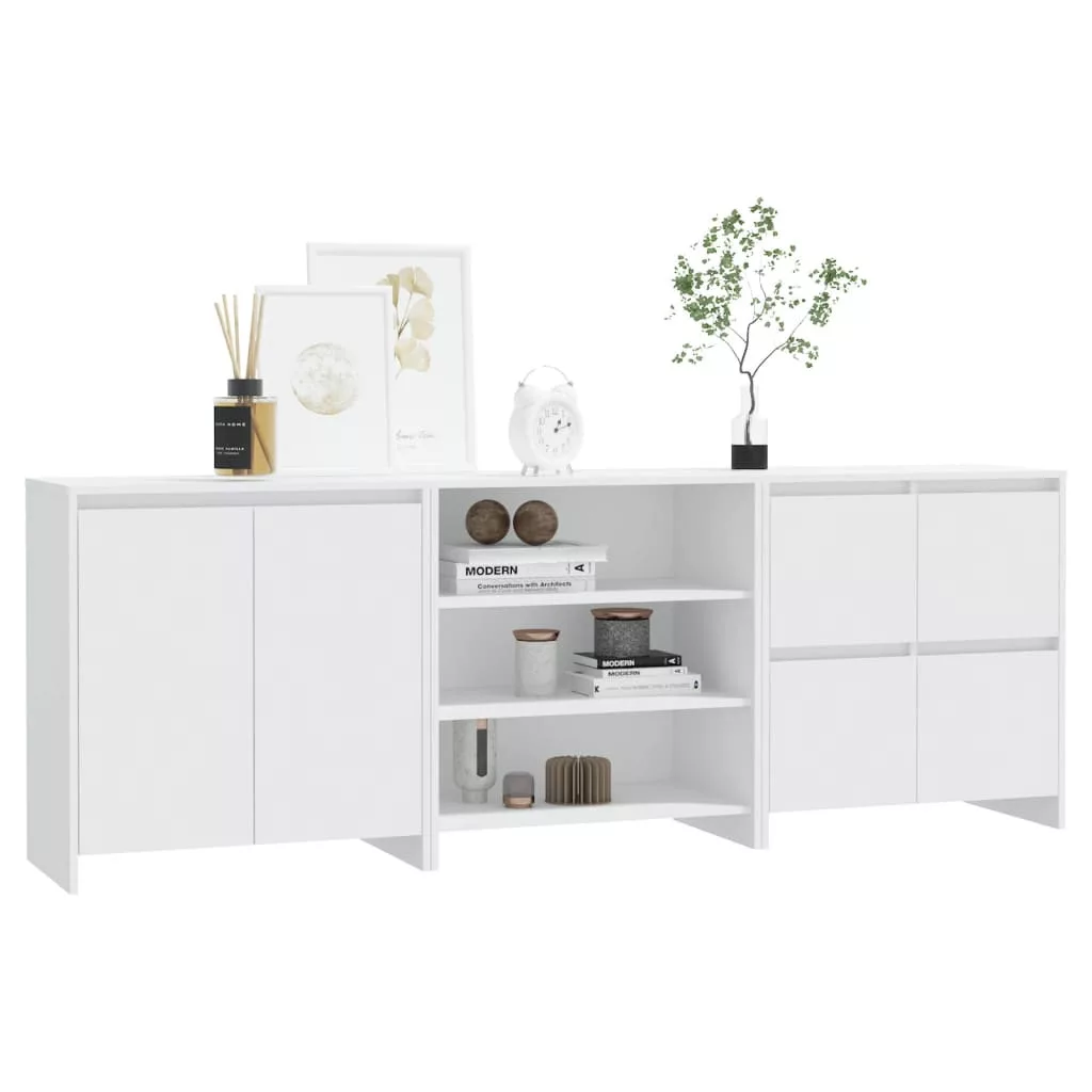 vidaXL 3 részes fehér szerelt fa tálalószekrény