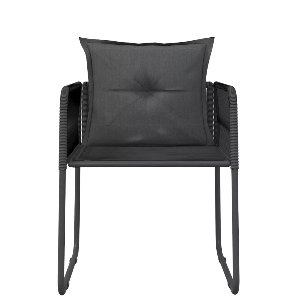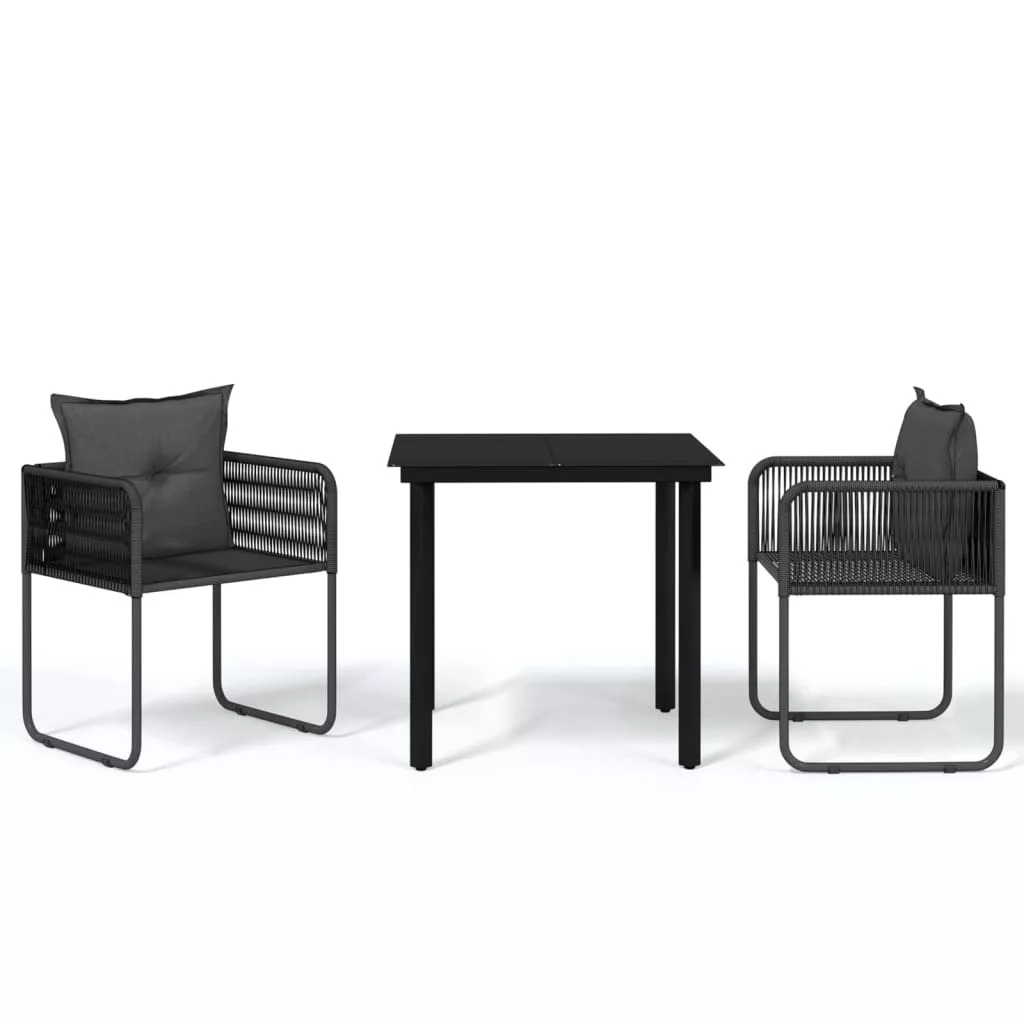Ez a porszórt acélvázból készült kerti étkezőgarnitúra strapabíró és stabil, mindennapos kültéri használatra alkalmas. A sima üveg asztallap nedves ruhával könnyen tisztítható, és tökéletesen alkalmas italok, ételek és egyéb dekorációs tárgyak elhelyezésére. Az udvari székek PE-rattanból készültek, könnyűek és vízállóak. Emellett a hátpárnák tökéletes kényelmet biztosítanak a pihenés során.