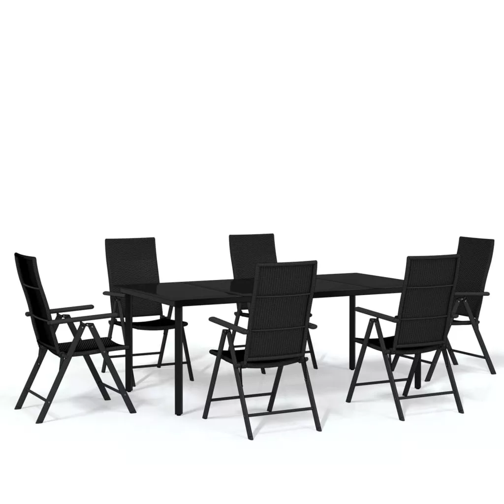 Ez a porszórt acélvázból készült kerti étkezőgarnitúra strapabíró és stabil, mindennapos kültéri használatra alkalmas. A sima üveg asztallap nedves ruhával könnyen tisztítható, és tökéletesen alkalmas italok, ételek és egyéb dekorációs tárgyak elhelyezésére. Az udvari székek PE-rattanból készültek, könnyűek és vízállóak. Emellett a székek háttámlái 7 dőlésszöggel rendelkeznek, így mindig megtalálhatja a legkényelmesebb üléspozíciót. Használaton kívül a székek összecsukhatók, így helytakarékosak.