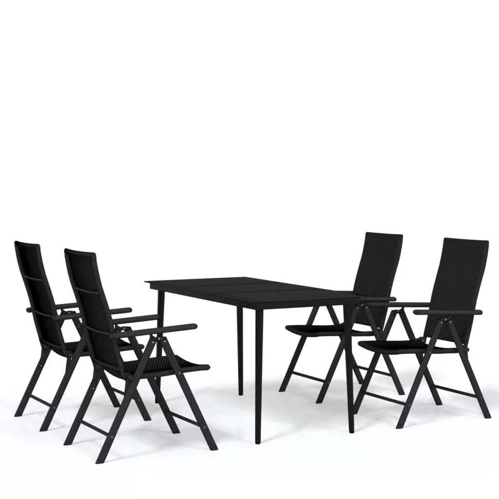 Ez a porszórt acélvázból készült kerti étkezőgarnitúra strapabíró és stabil, mindennapos kültéri használatra alkalmas. A sima üveg asztallap nedves ruhával könnyen tisztítható, és tökéletesen alkalmas italok, ételek és egyéb dekorációs tárgyak elhelyezésére. Az udvari székek PE-rattanból készültek, könnyűek és vízállóak. Emellett a székek háttámlái 7 dőlésszöggel rendelkeznek, így mindig megtalálhatja a legkényelmesebb üléspozíciót. Használaton kívül a székek összecsukhatók, így helytakarékosak.