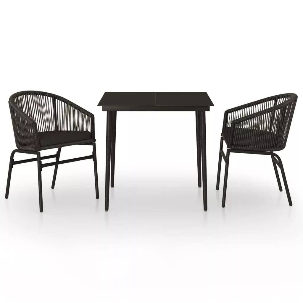 Ez a porszórt acél vázzal rendelkező kerti étkezőgarnitúra strapabíró, stabil és mindennapos kültéri használatra alkalmas. A sima üveg asztallap nedves ruhával könnyen tisztítható, és tökéletesen alkalmas italok, ételek és egyéb dekorációs tárgyak elhelyezésére. A teraszszékek PVC rattanból készültek, így stabilak és ellenállnak a rossz időjárásnak és az UV-sugaraknak. Emellett minden székhez egy levehető, vastag párna tartozik, amely még kényelmesebbé teszi a pihenést.