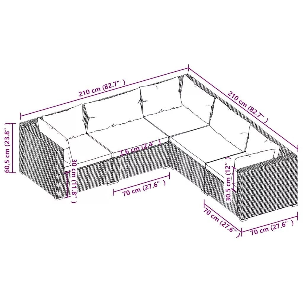 - Sarok/középső kanapé mérete (egyenként): 70 x 70 x 60,5 cm (Ho x Szé x Ma)