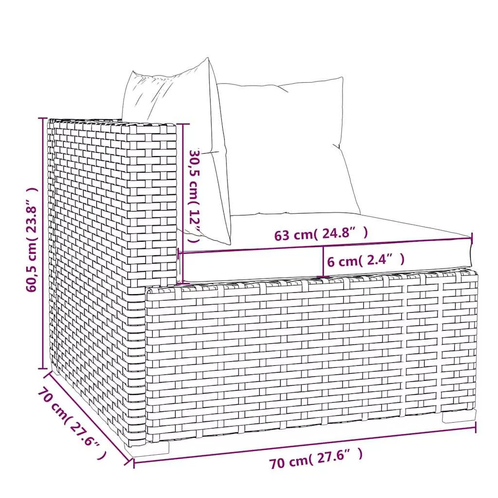 - Középső kanapé ülőpárna mérete: 70 x 63 x 6 cm (Ho x Szé x Va)