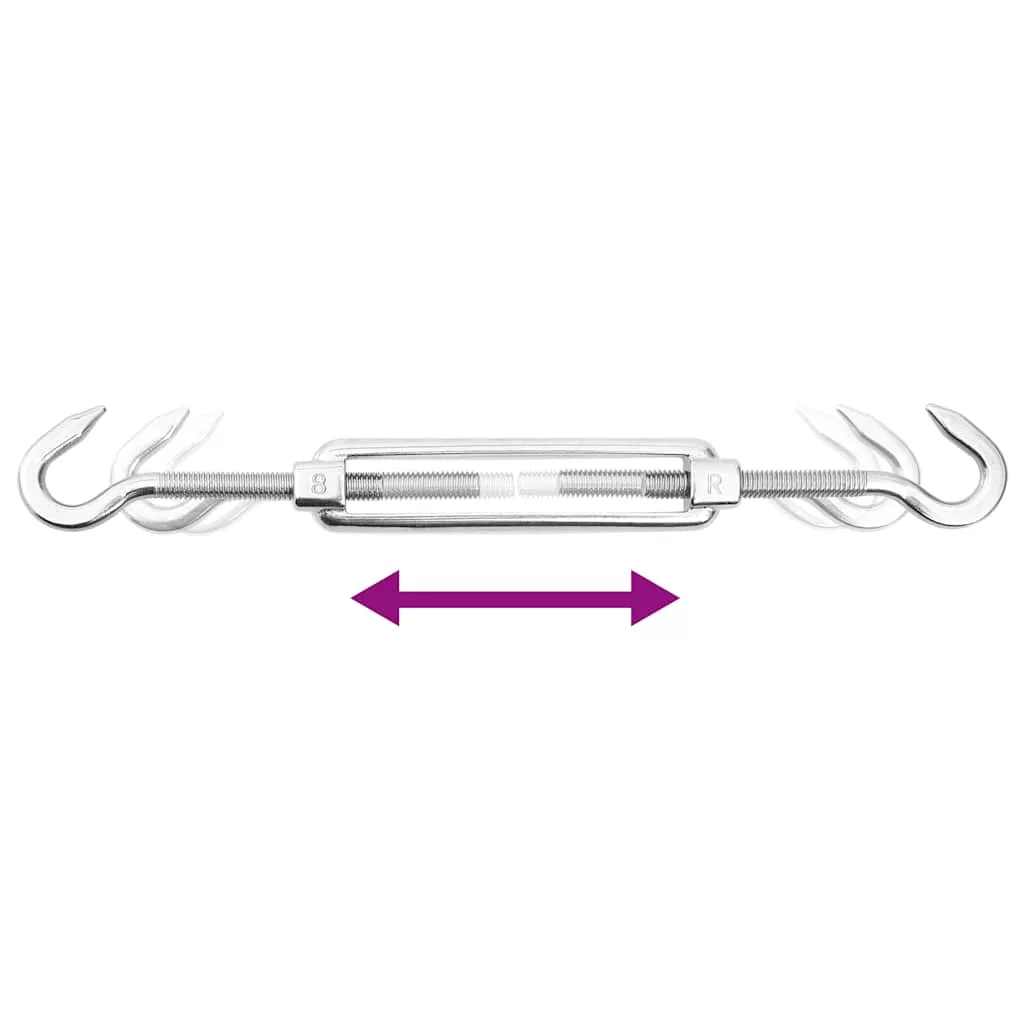 A rozsdamentes acél rögzítőszett könnyen használható, és a legtöbb napvitorlának megfelel. Mihelyt a rögzítőszemek stabil falfelületre kerülnek, a napvitorla a karabinerek segítségével rögzíthető. Ezek rendkívül egyszerűen levehetőek. Ráadásul a kötélfeszítőt állítani is lehet, így a napvitorla könnyen megfeszíthető vagy lazítható.