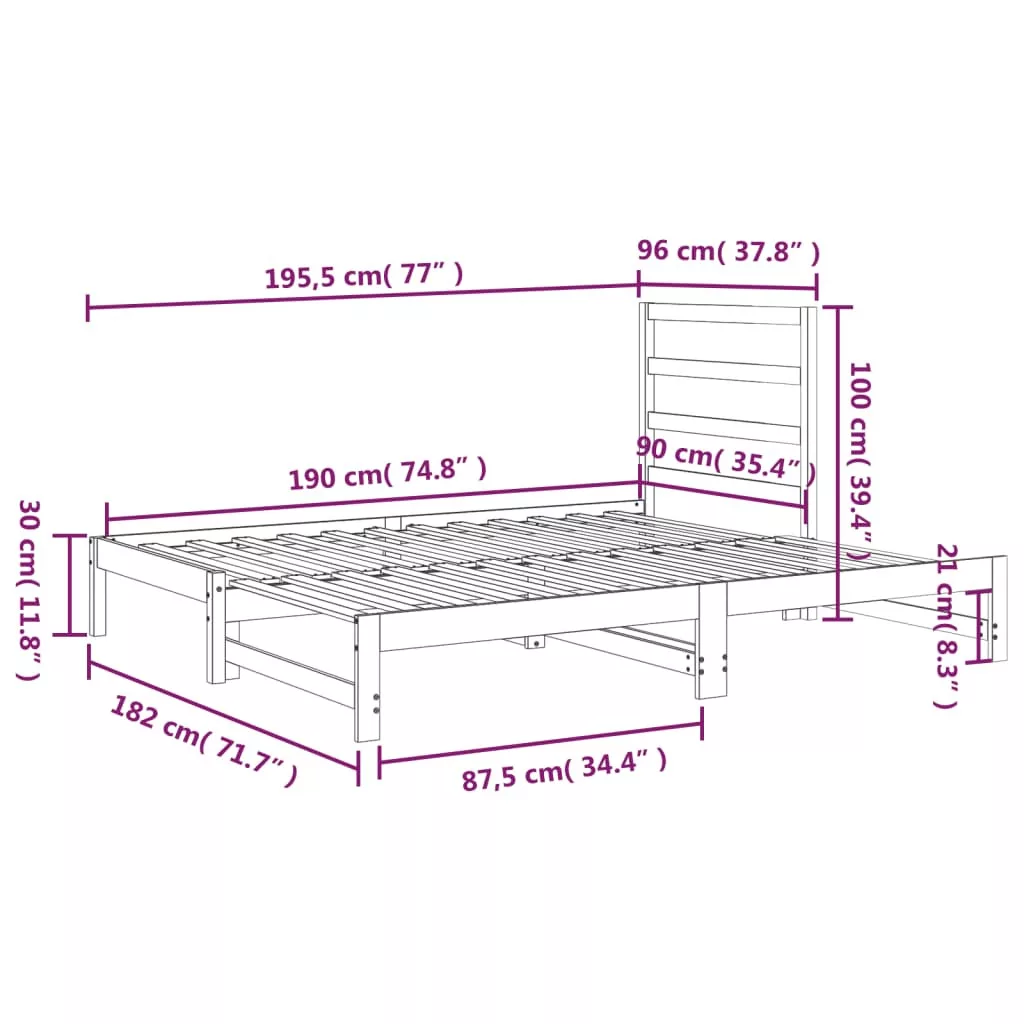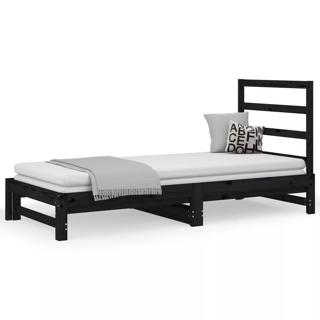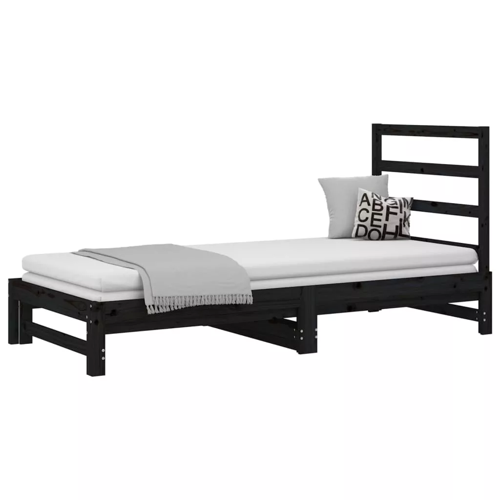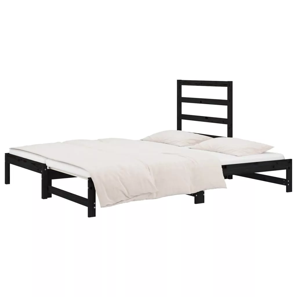 vidaXL fekete tömör fenyőfa kihúzható kanapéágy 2x(90x190) cm