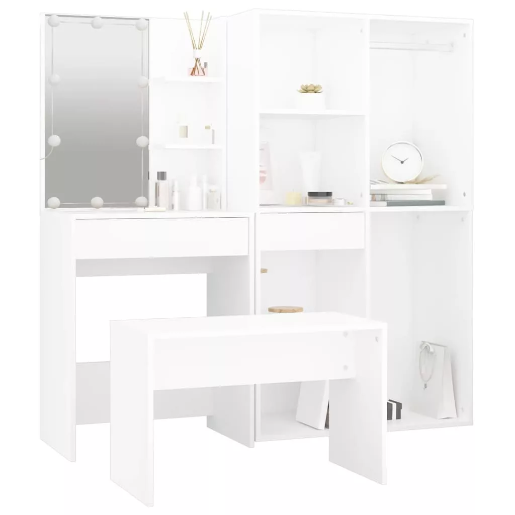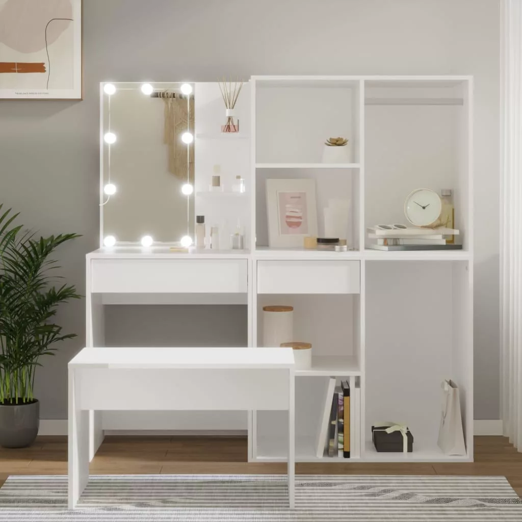 Ez a divatos fésülködőasztal-szett időtlen, kifinomult stílust visz hálószobájába. A LED-es fésülködőasztal-szett hálószobája tökéletes kiegészítője lesz, miközben kézközelben tarthatja kozmetikumait!