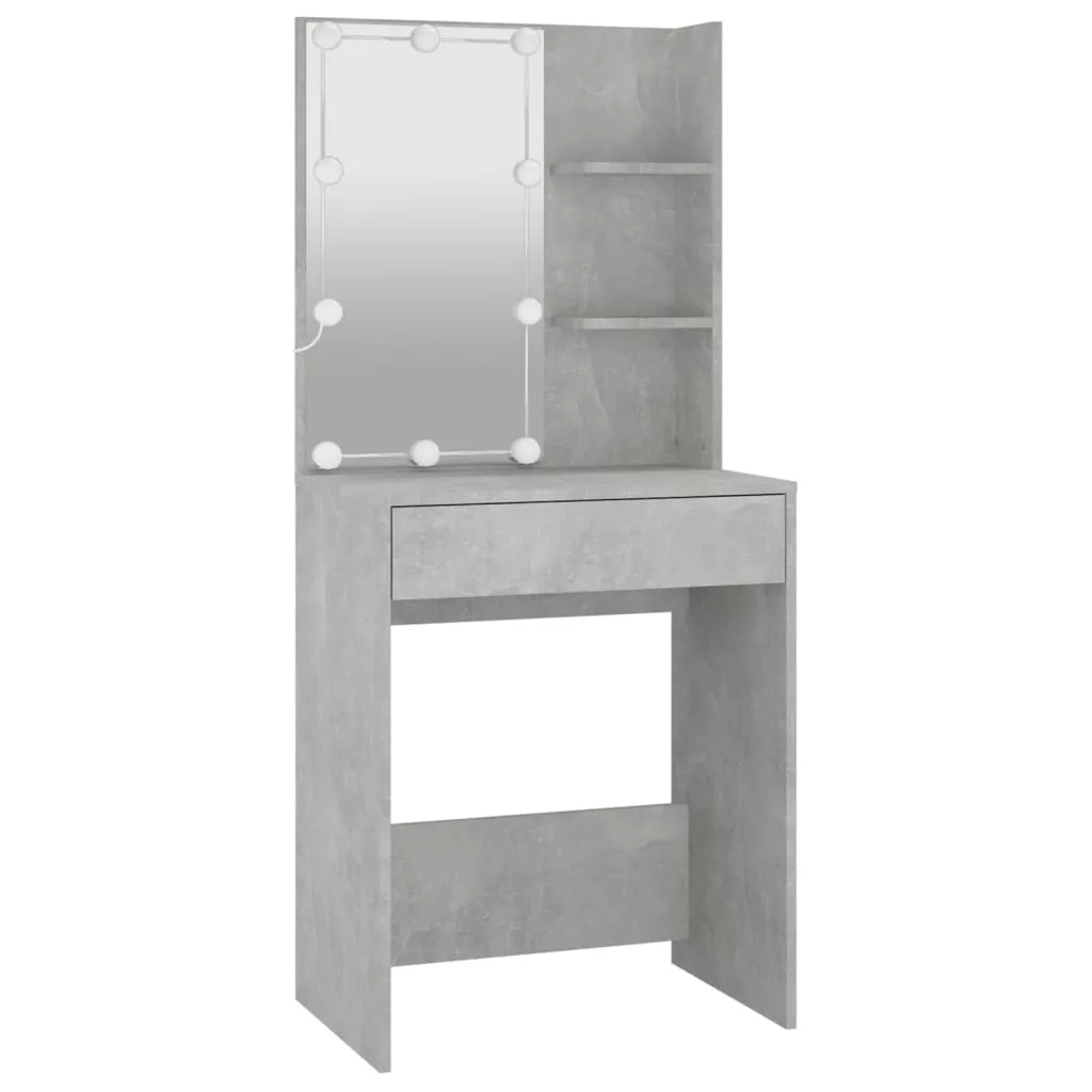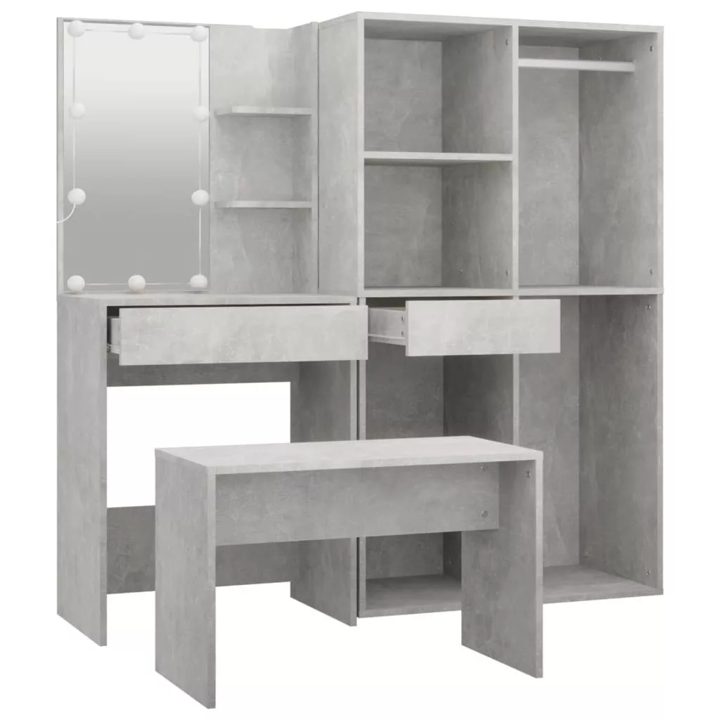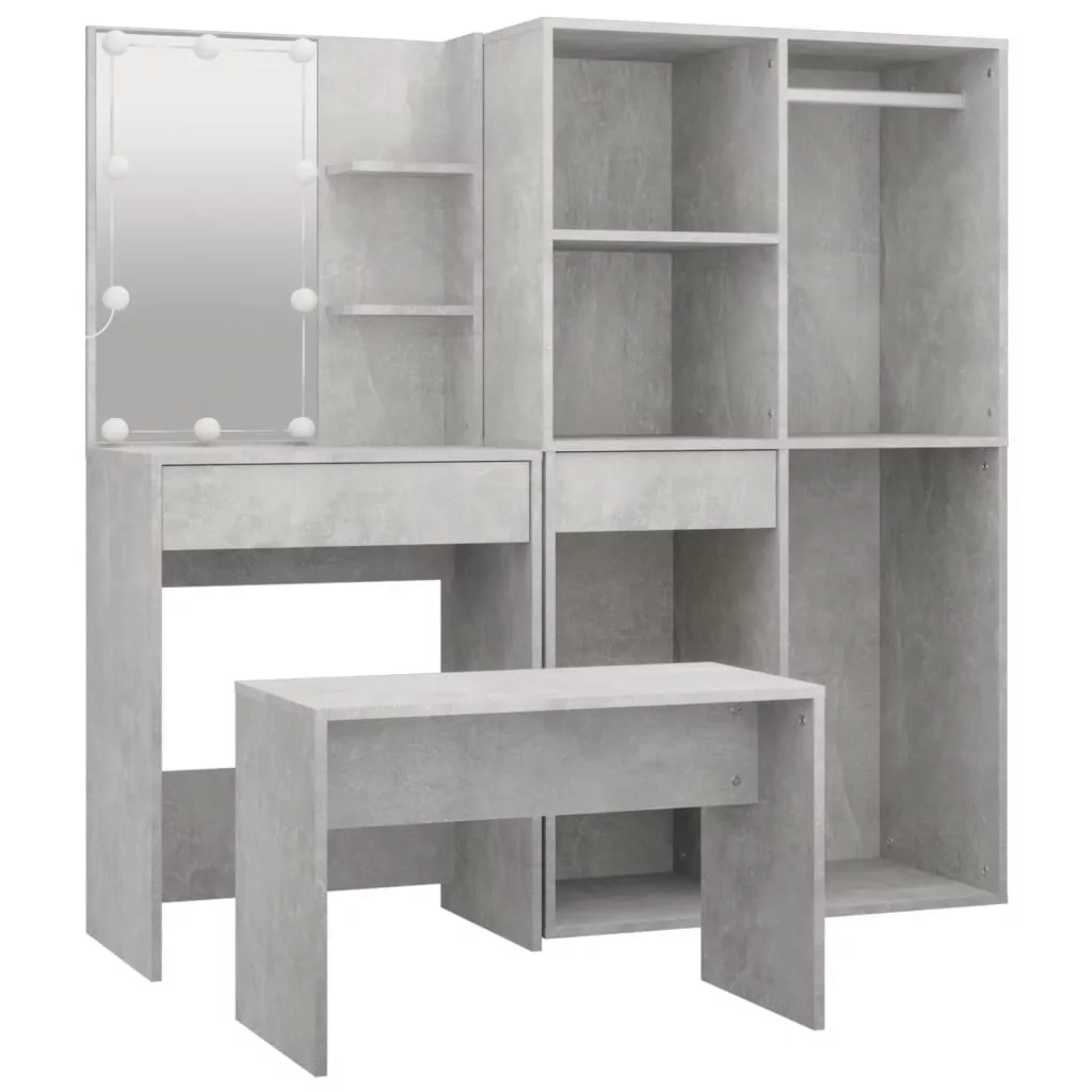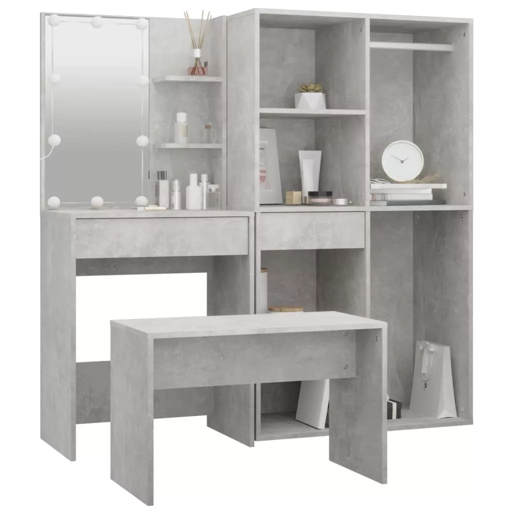 vidaXL betonszürke szerelt fa fésülködőasztal-szett LED-ekkel