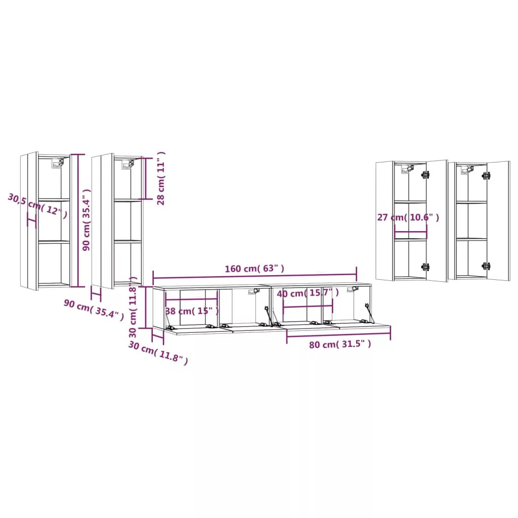 - 4 db TV-szekrény: 30,5 x 30 x 90 cm (Szé x Mé x Ma)
