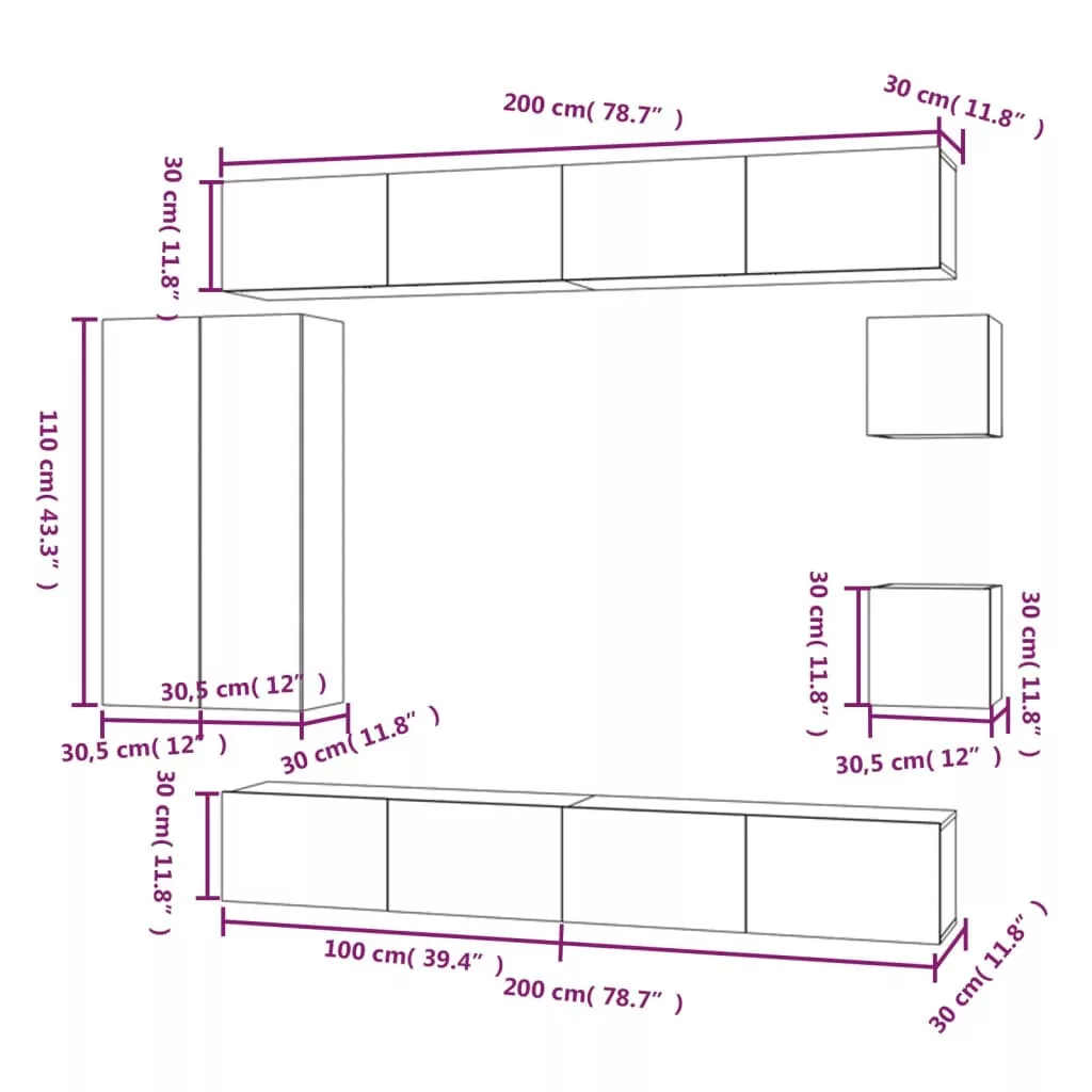 - 4 db TV-szekrény: 100 x 30 x 30 cm (Ho x Szé x Ma)