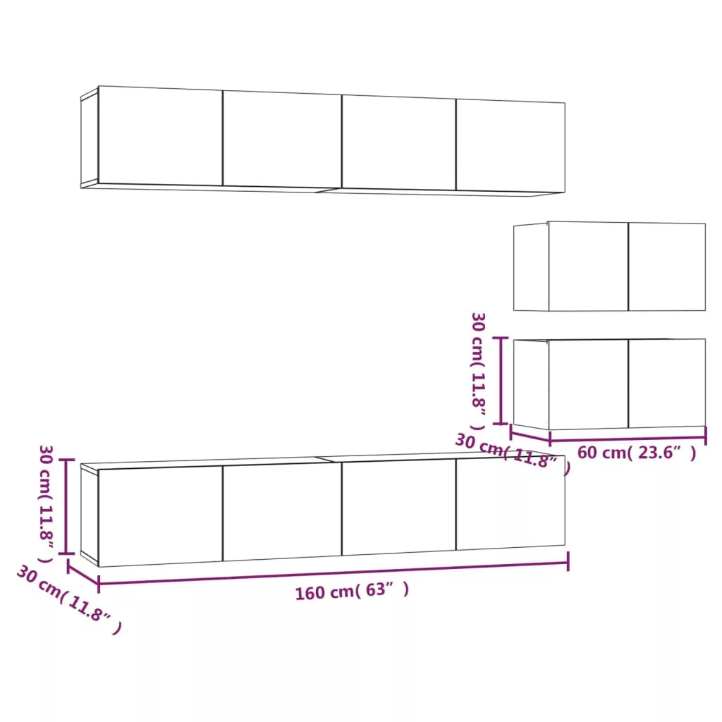 - 4 db TV-szekrény: 80 x 30 x 30 cm (Ho x Szé x Ma)