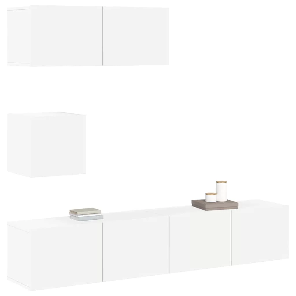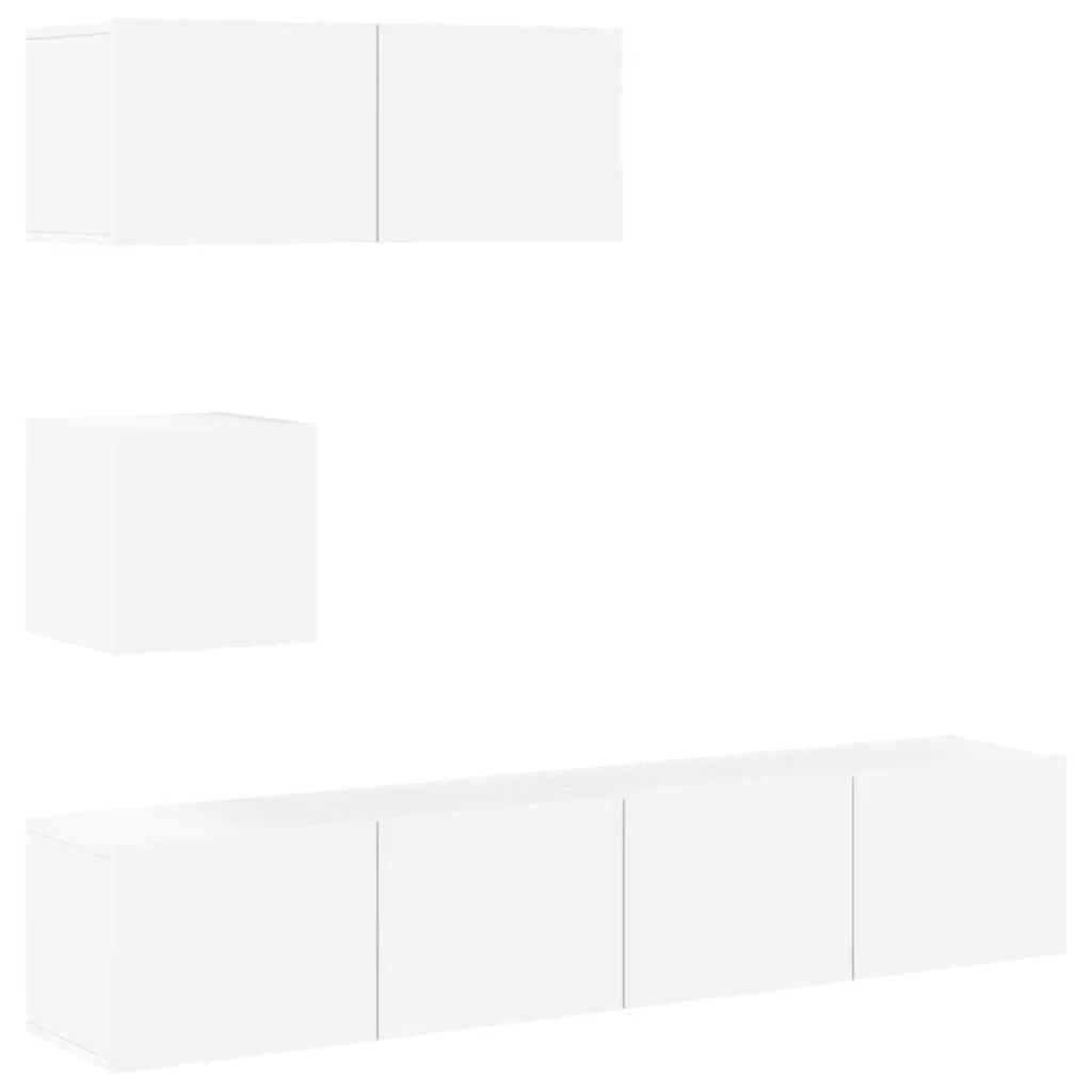 Ez a TV-szekrényszett letisztult és modern tervezésével dekoratív és praktikus kiegészítője lehet otthona berendezésének.