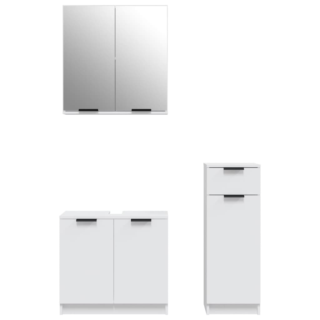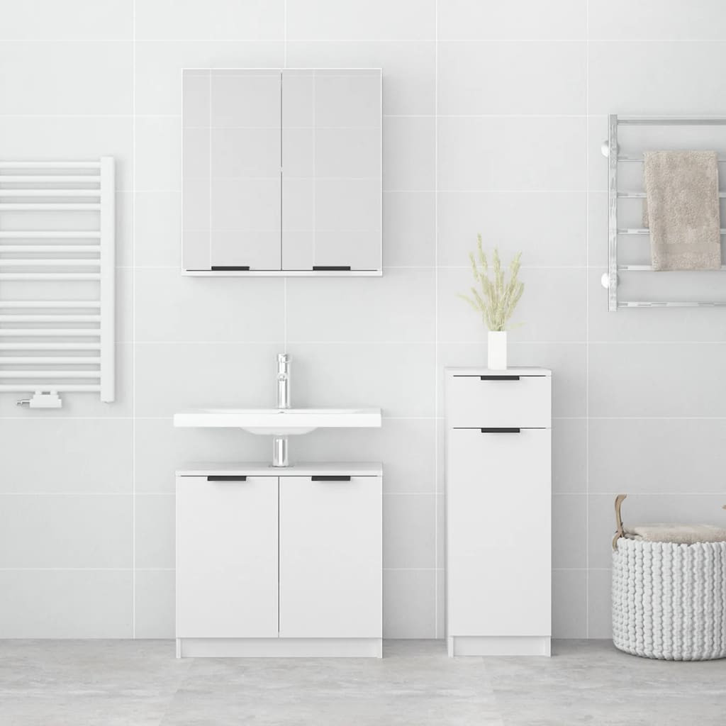 vidaXL 3 részes fehér szerelt fa fürdőszobaszekrény-szett