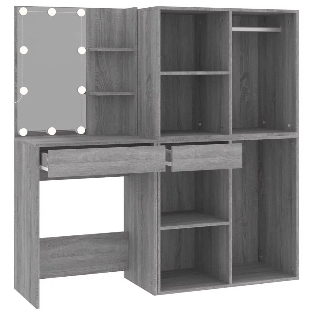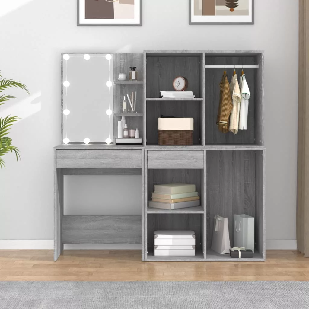 vidaXL szürke sonoma színű szerelt fa LED-es pipereasztal szekrénnyel