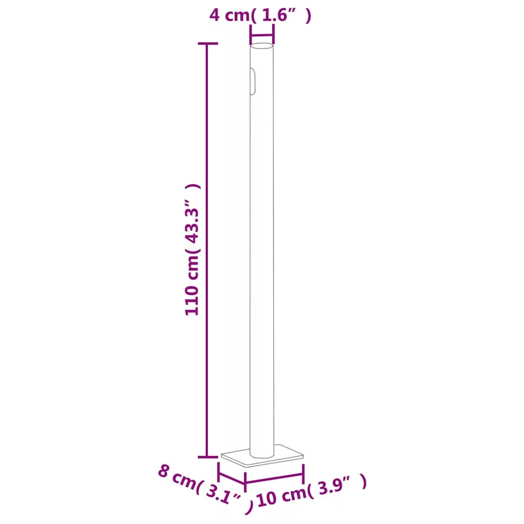 A napellenző UV-, víz- és szakadásálló poliészterből készült. A kazetta egy függőleges, erős acélalapra lett felszerelve, így a napellenző könnyen kihúzható. A napellenző automatikusan visszahúzódik. A csomag a szereléshez szükséges kellékeket is tartalmazza.