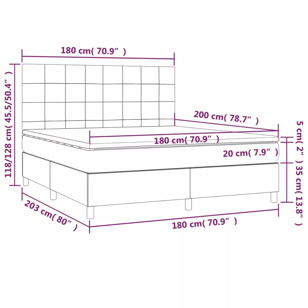 vidaXL sötétbarna szövet rugós ágy matraccal 180 x 200 cm