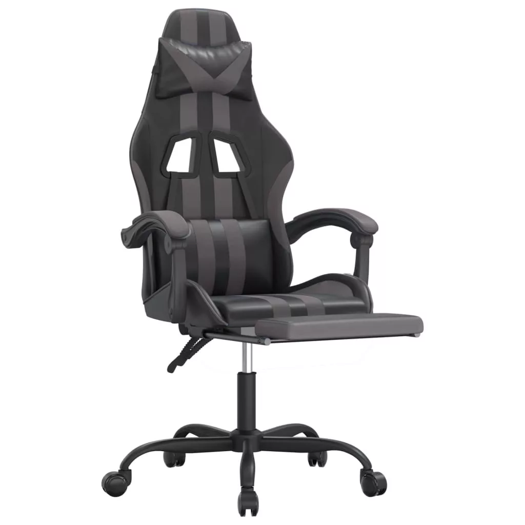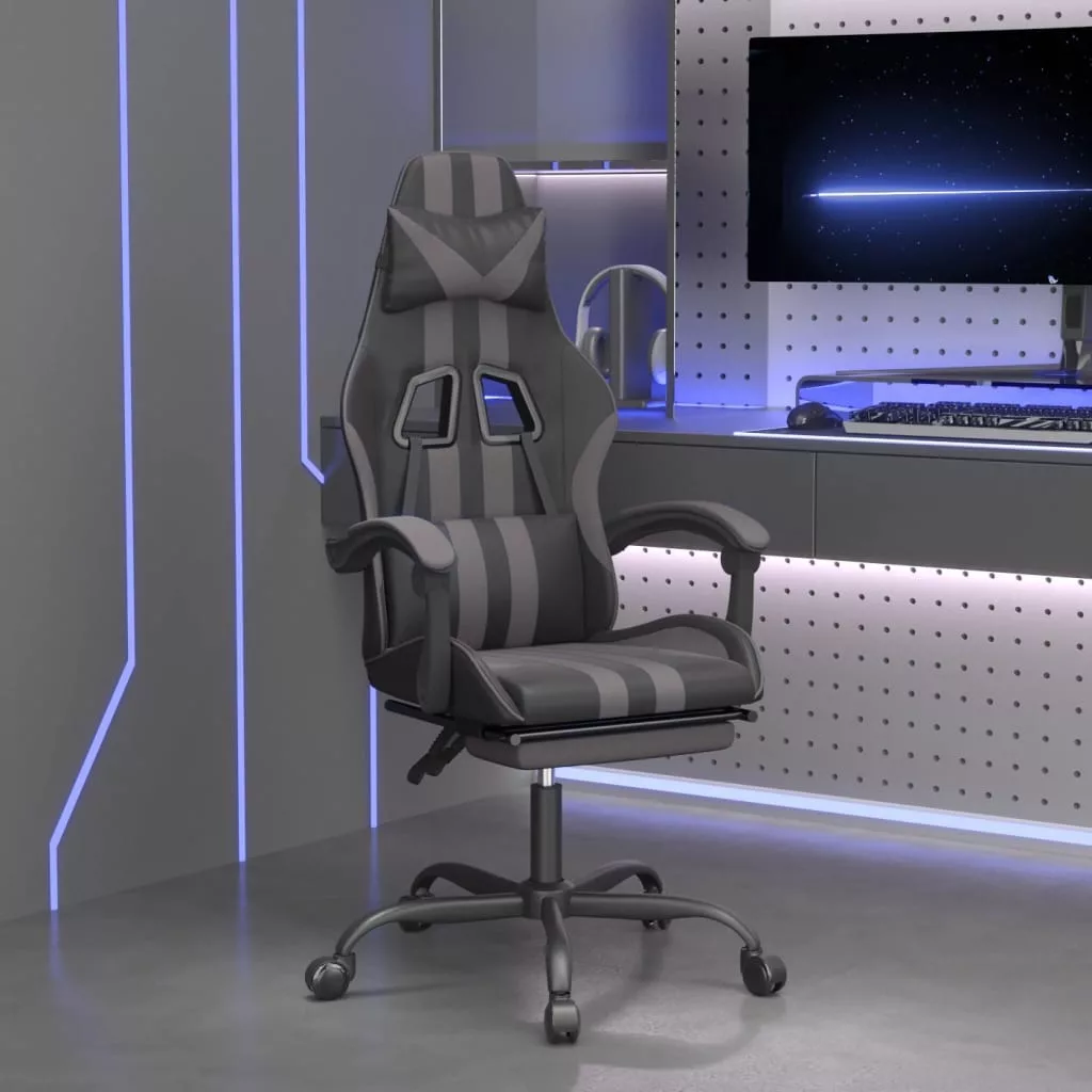 vidaXL fekete és szürke műbőr játékszék lábtartóval