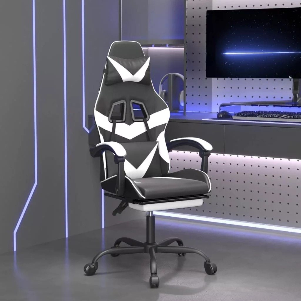 vidaXL fekete és fehér műbőr játékszék lábtartóval