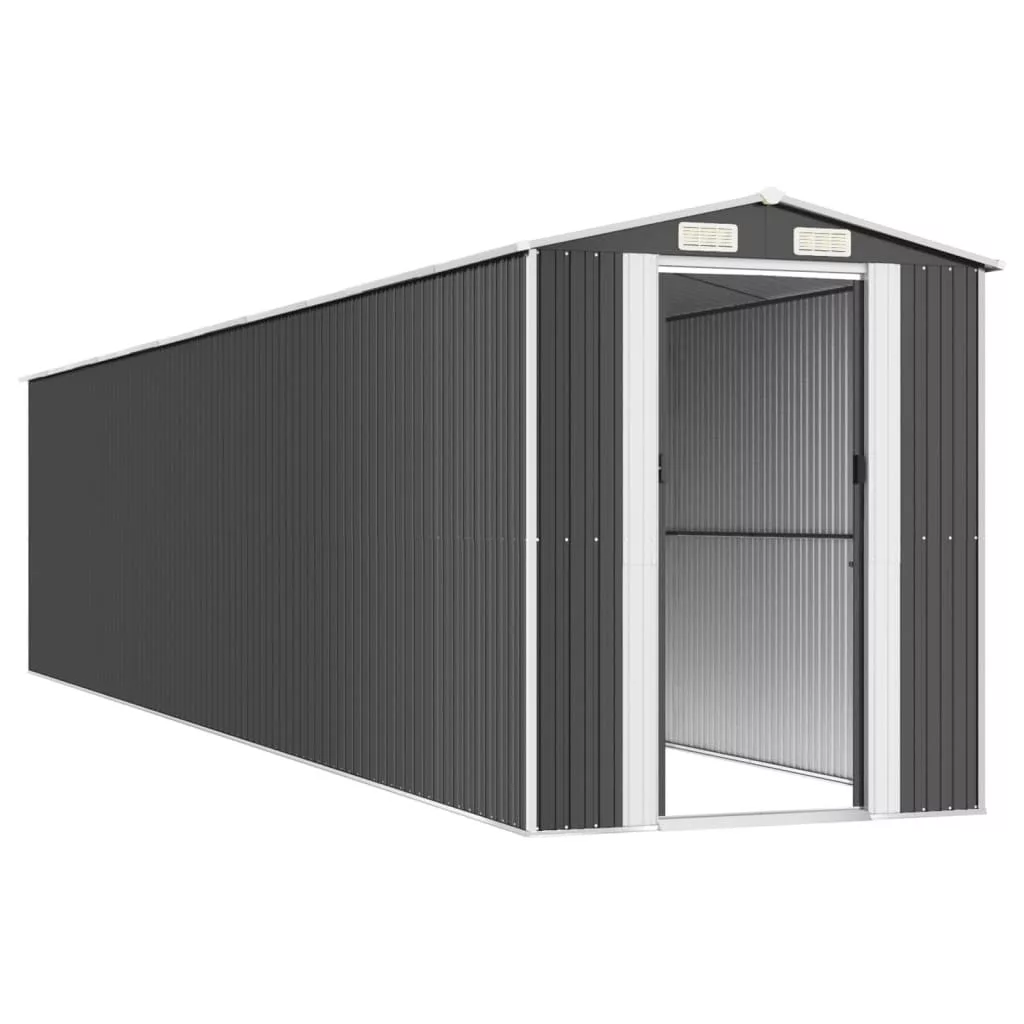 - Tartós alapanyag: A kerti fészer horganyzott acélból készült, ami ellenáll a rozsdásodásnak és biztosítja a hosszútávú használatot.