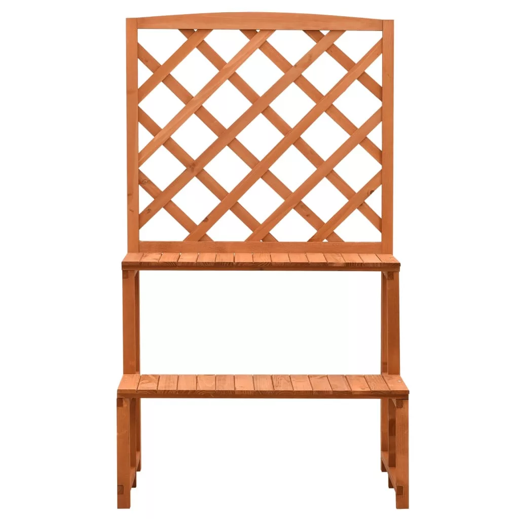 Ez a tömör fenyőfából készült virágállvány masszív, és kültéri használatra alkalmas. A kerti növényállvány két különböző magasságú polccal rendelkezik, amelyek bőséges helyet biztosítanak a cserepes növények és a kerti díszek számára. A létrás kialakítással gyönyörűen megjelenítheti virágait, és a növények is több napfényt kapnak és jobban növekednek. Emellett a rács kiváló támaszt biztosít a kúszónövényeknek.