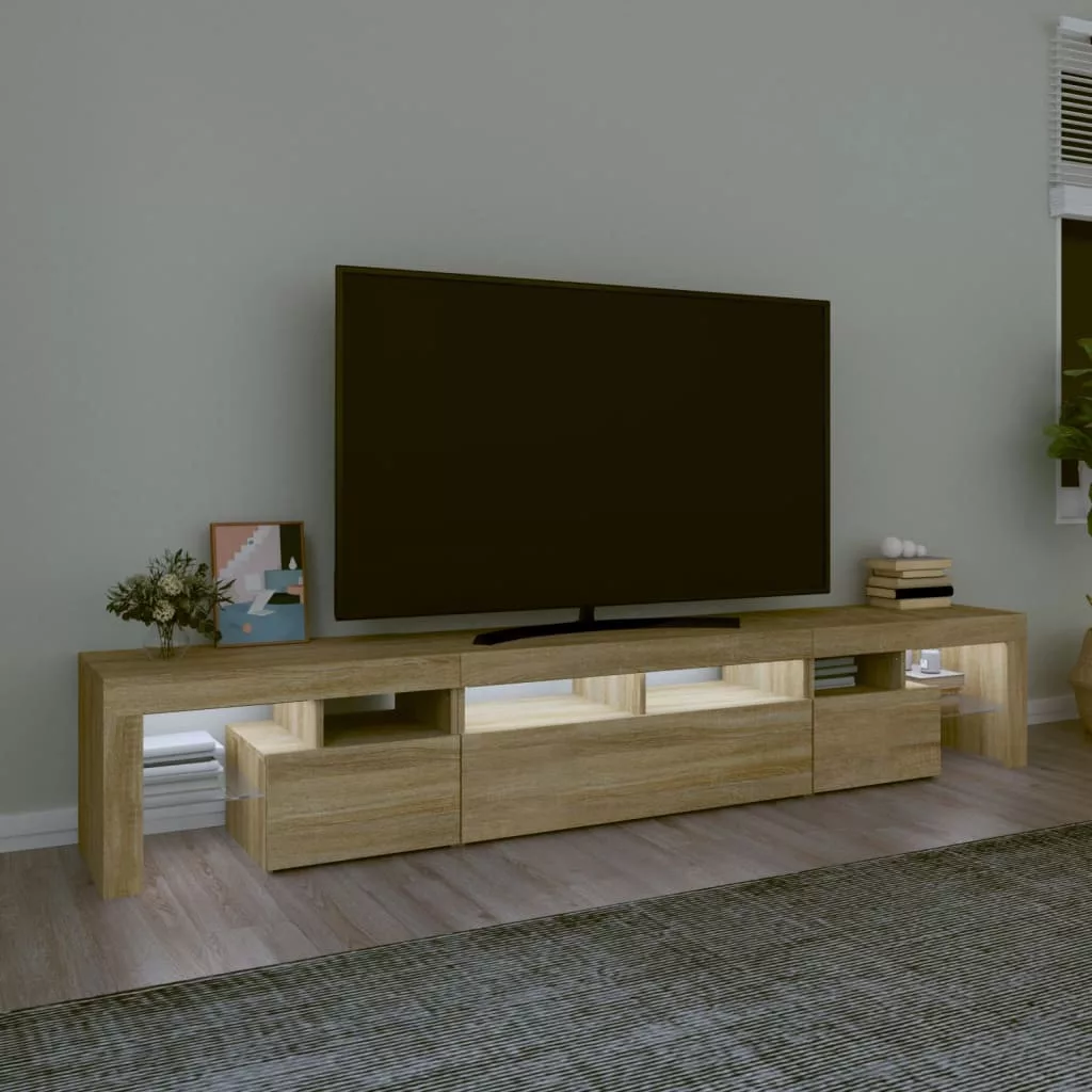 Ez a stílusos, mégis praktikus kialakítású LED-lámpákkal ellátott TV-szekrény minden bizonnyal szobája középpontjává fog válni.