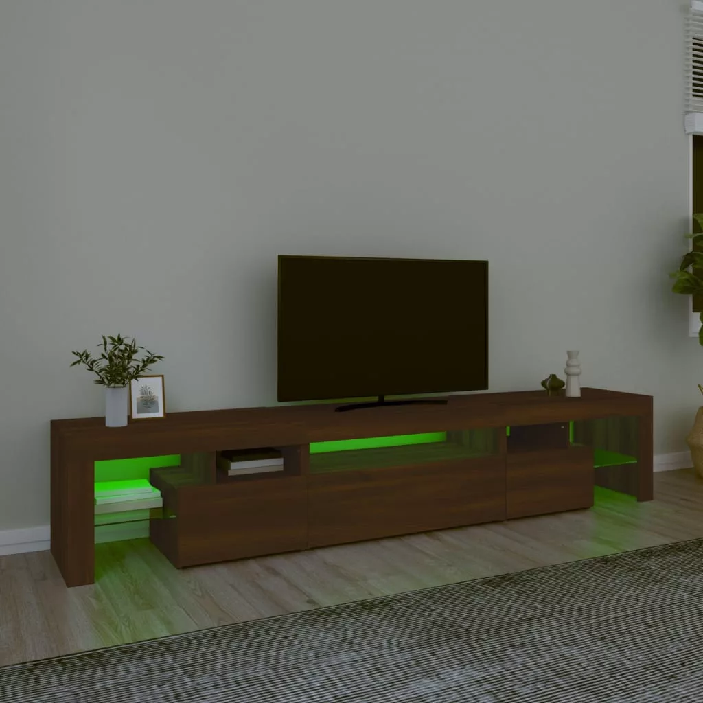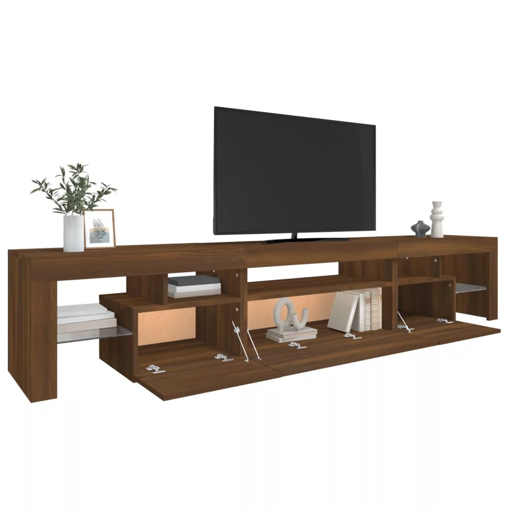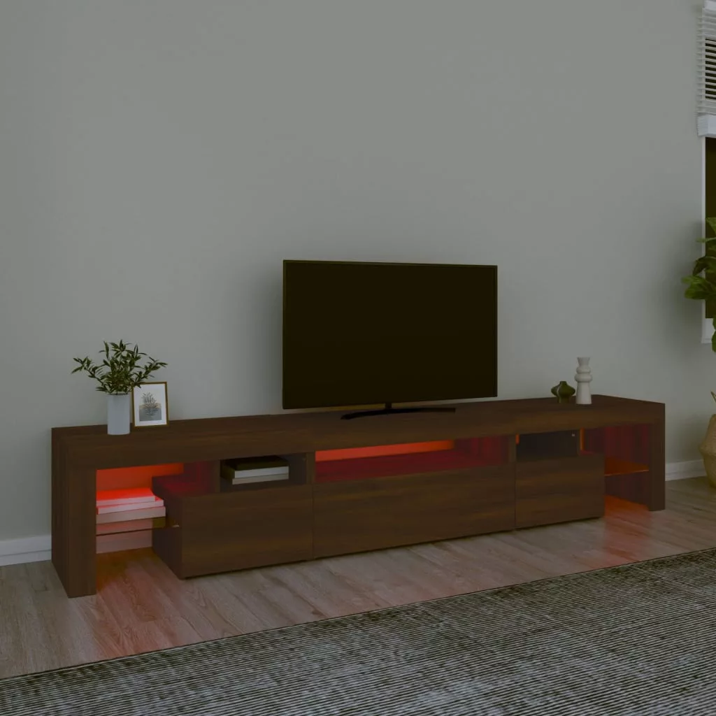 Ez a stílusos, mégis praktikus kialakítású LED-lámpákkal ellátott TV-szekrény minden bizonnyal szobája középpontjává fog válni.