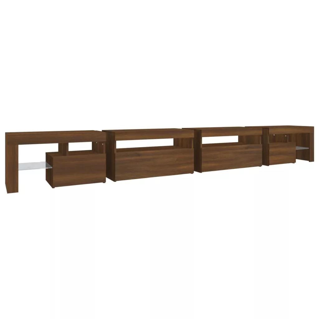 - Színes LED-világítás: A TV-állvány RGB LED-világítással lett ellátva, amely különféle menükkel rendelkezik a fény színének változtatására, vagy beállítható a szín automatikus váltakozása. A LED-világítás kiemeli a szekrény modern kialakítását, és fokozza divatos hangulatát.