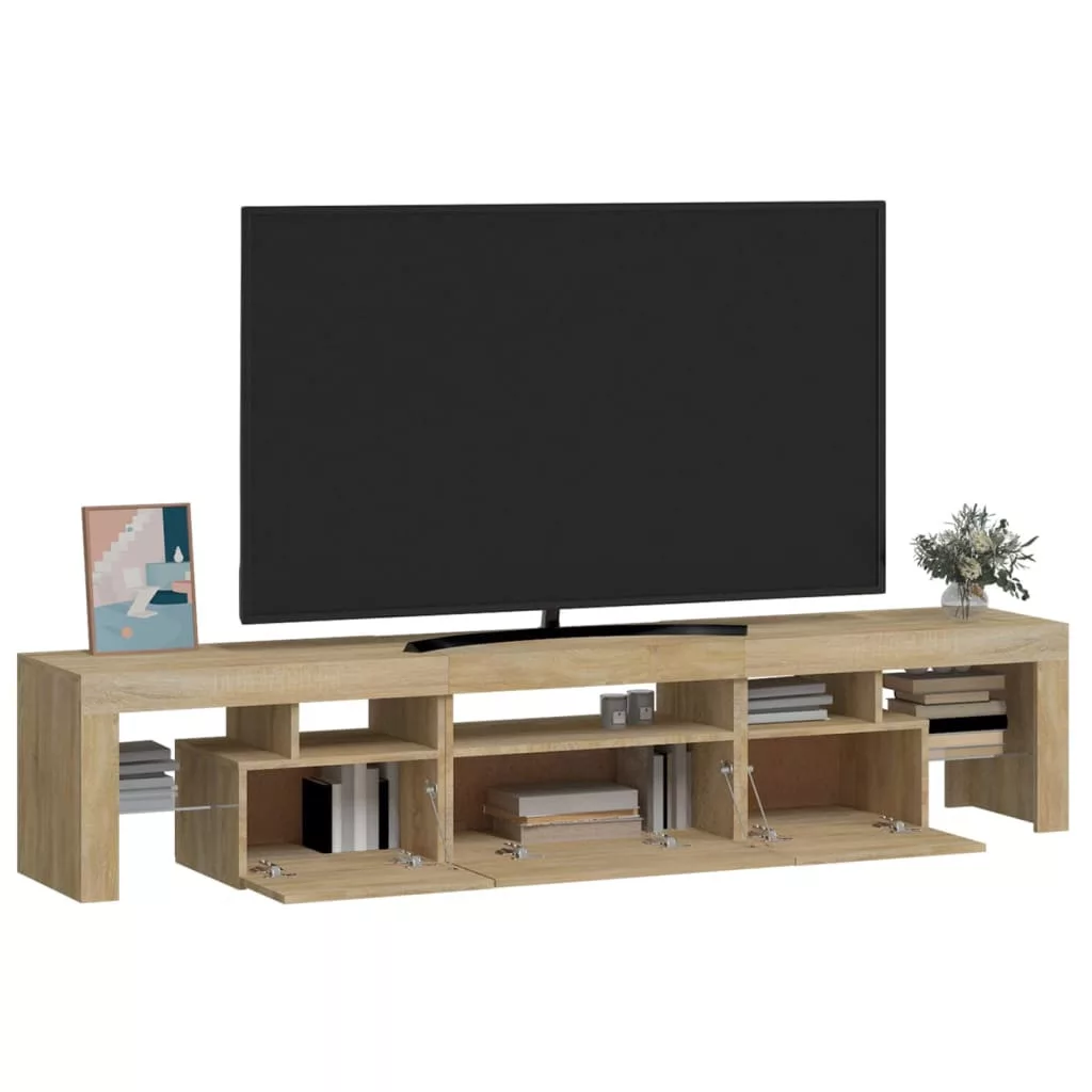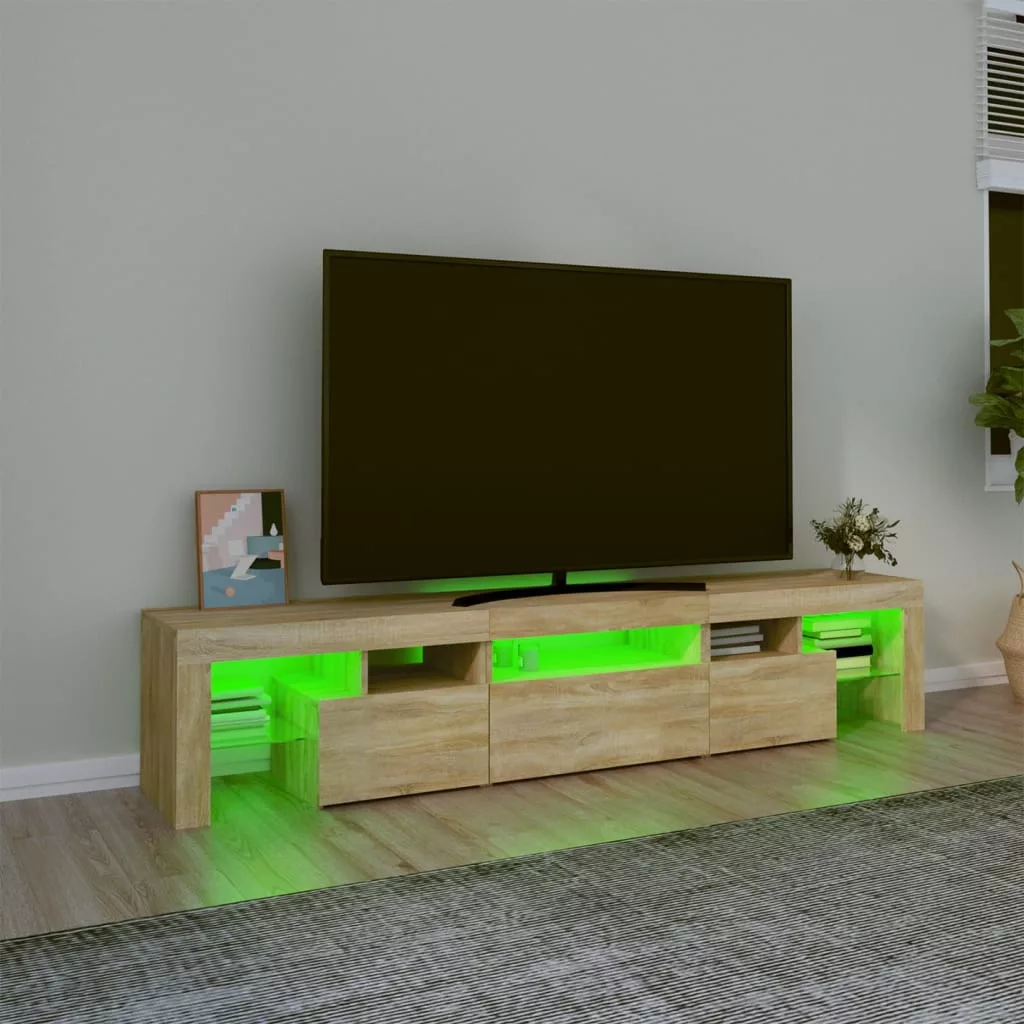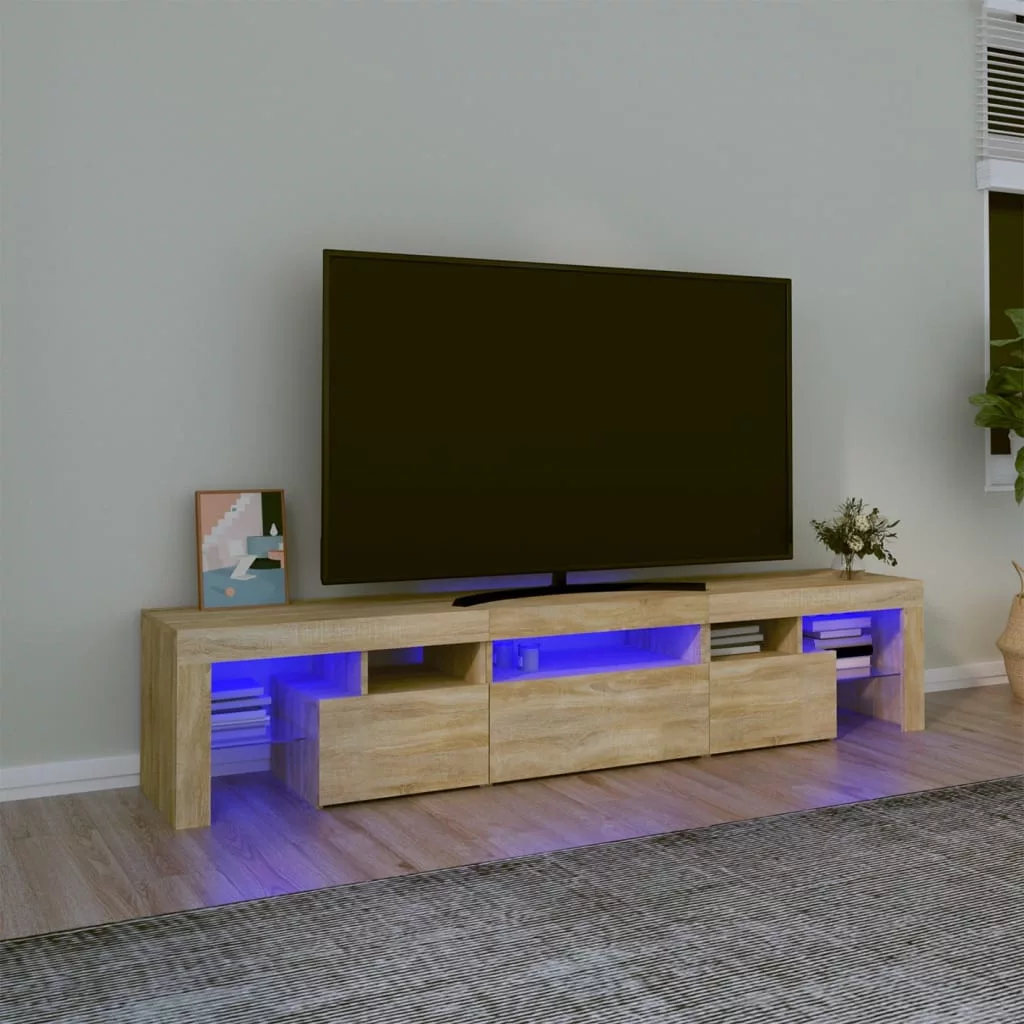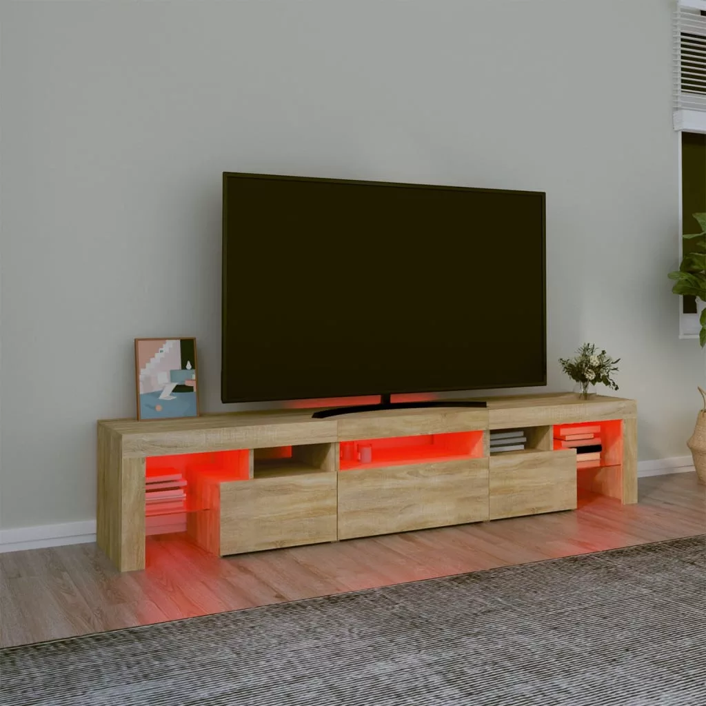Ez a stílusos, mégis praktikus kialakítású LED-lámpákkal ellátott TV-szekrény minden bizonnyal szobája középpontjává fog válni.