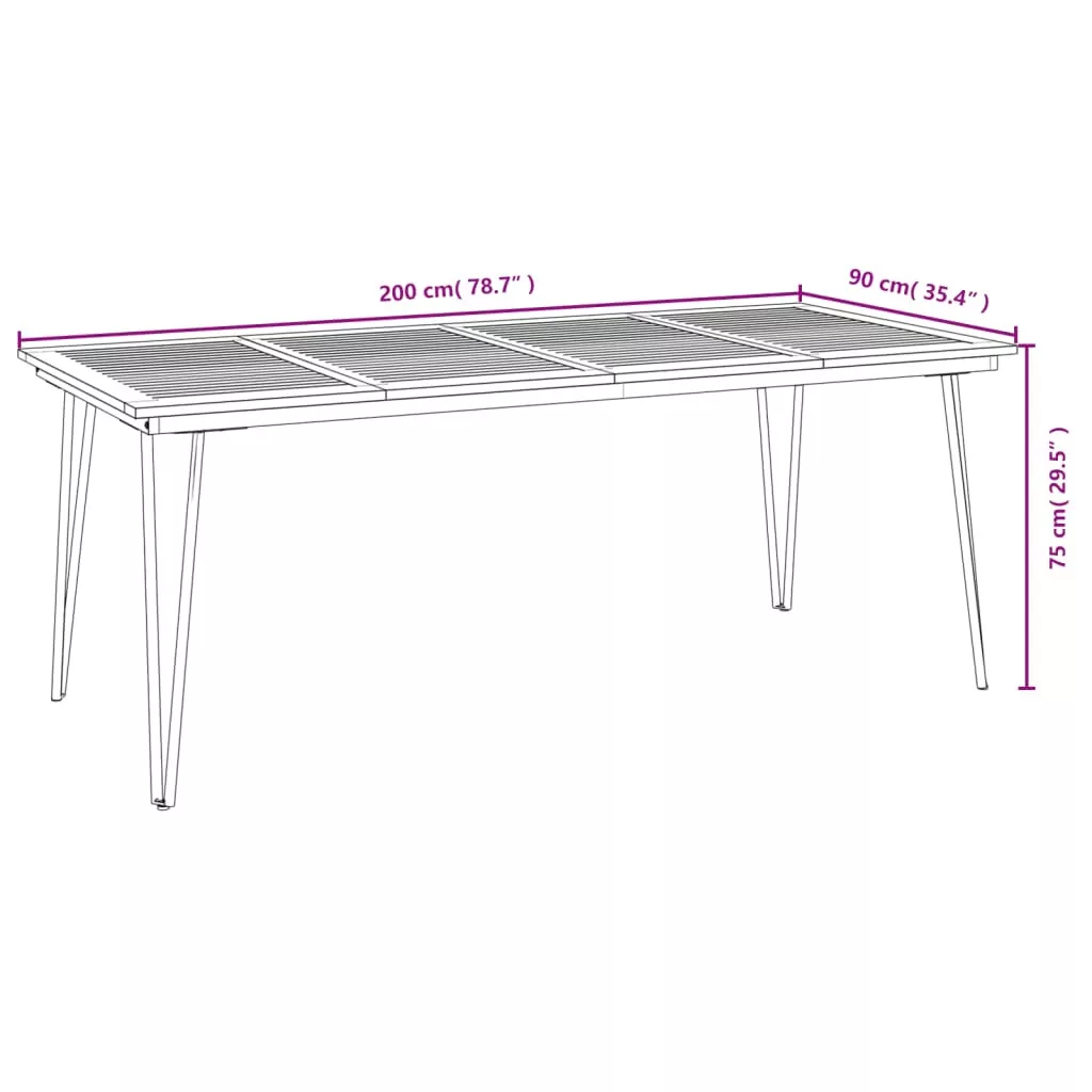 • Kerti asztal mérete: 200 x 90 x 75 cm (Szé x Mé x Ma)