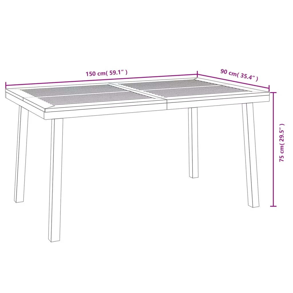 - Kerti asztal mérete: 150 x 90 x 75 cm (Szé x Mé x Ma)