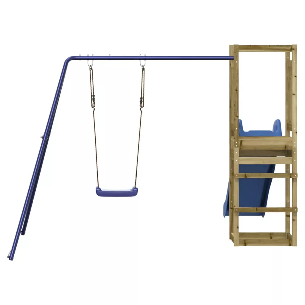 - Impregnált fa: Ez a kerti mászóka vákuumnyomással impregnált fenyőfából készült. A tömör fenyőfa egy gyönyörű, természetes anyag. A fenyőfa egyenes erezetű, a csomók pedig jellegzetes, rusztikus megjelenést biztosítanak az anyagnak. Az impregnálás egy tartósítási eljárás, amely egy zárt, túlnyomásos berendezés használatával történik. A nyomáskezelés növeli a korhadással és a vízzel szembeni ellenállást.