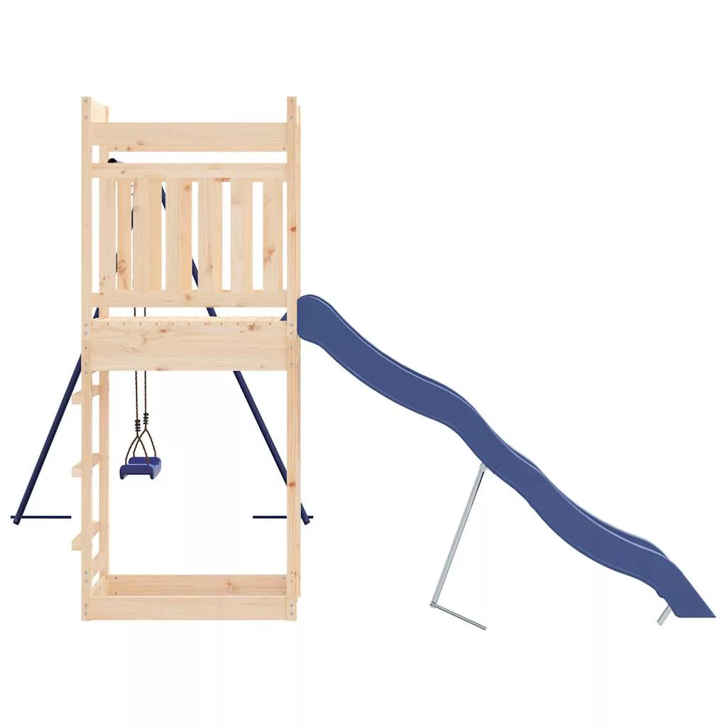 - Multi-aktivitási központ: A fa játszószett 118 cm magas emelvénnyel, valamint hullámos csúszdával, hintaszettel és homokozóval rendelkezik. A kicsik barátaikat is meghívhatják játszani.