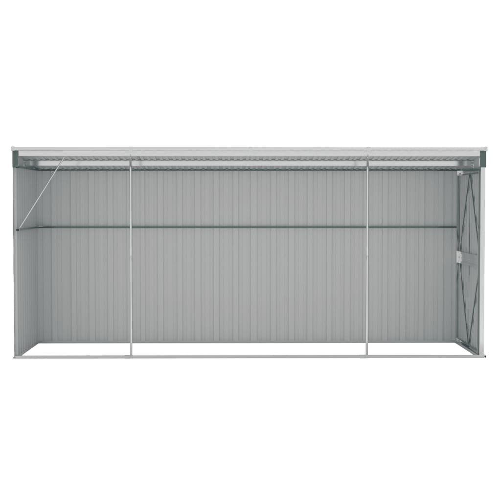 Mivel horganyzott acélból és fémből készült, a tároló minimális karbantartást igényel és nagyon tartós. Az elülső dupla nyíló ajtók könnyű be- és kijutást tesznek lehetővé. A zárható műanyag fogantyú biztosítja a tárgy biztonságát. Ezenkívül az esővíz automatikusan elfolyik a tetőről a lejtős kialakításnak köszönhetően.