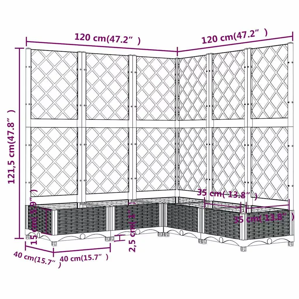 Ez az ültető időjárásálló polipropilénből készült, erős és masszív, és kültéri használatra alkalmas. Az alsó dobozban sok zöld növény és virág fér el. A beépített rács nagyszerű támaszt nyújt a kúszónövények, például a paradicsom, a borsó és a rózsa futtatásához.