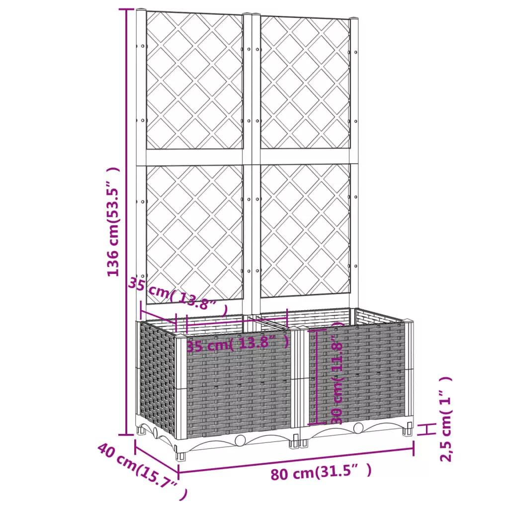 - Masszív és tartós anyag: Ez a virágláda időjárásálló PP-ből készült, erős és masszív, és kültéri használatra alkalmas.