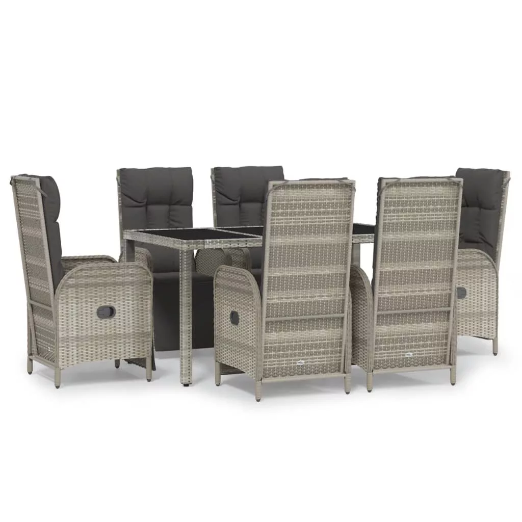 Ez a divatos kerti étkezőgarnitúra elegáns és modern megjelenésével nagyszerű választás a kertben való pihenéshez vagy szabadtéri étkezésekhez.