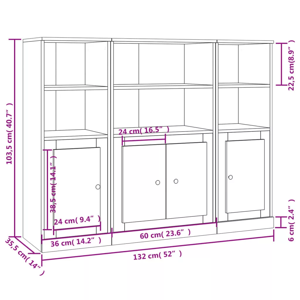 - Bőséges tárolóhely: A tálalószekrény bőséges helyet biztosít alapvető holmijai kézközelben történő rendezett tárolásához.