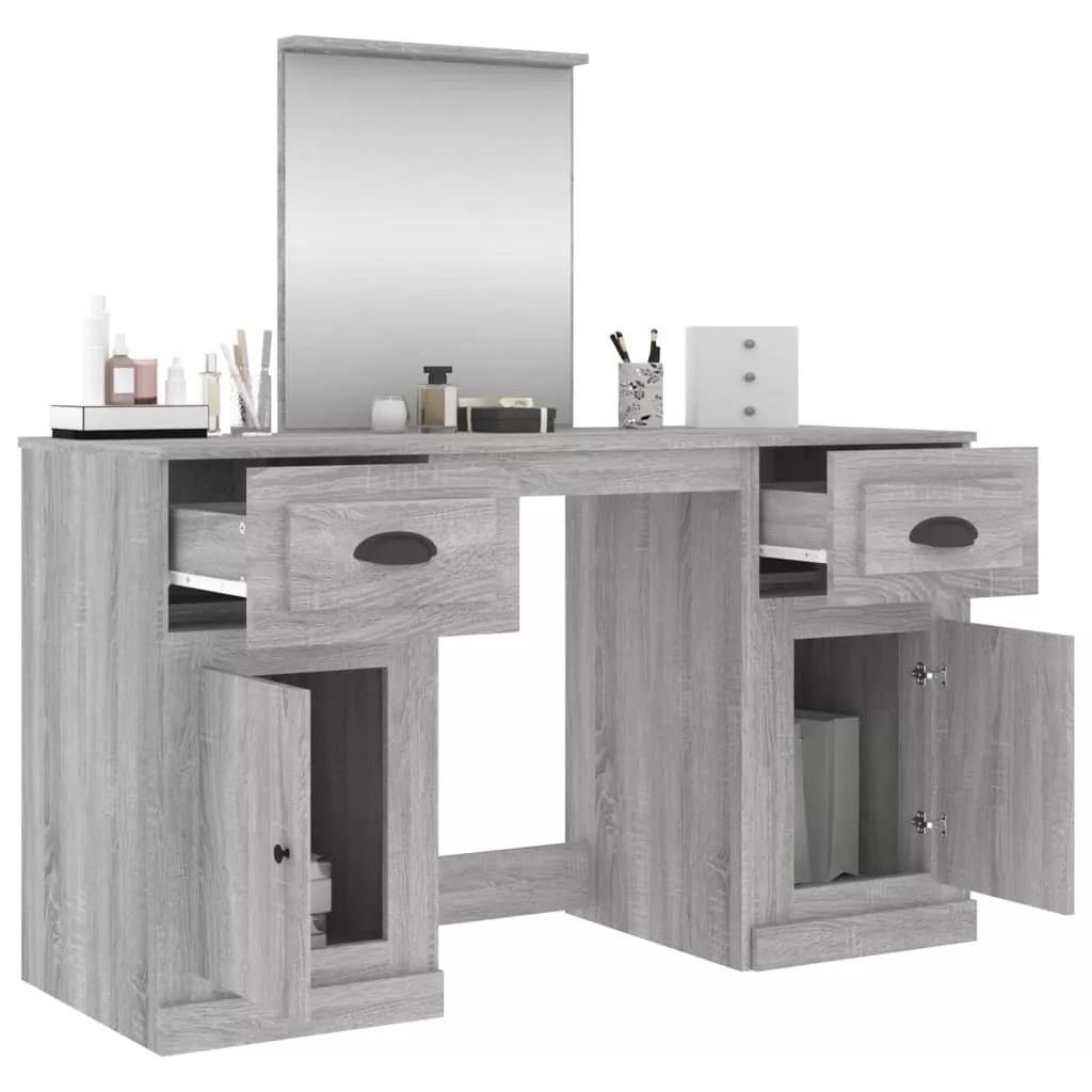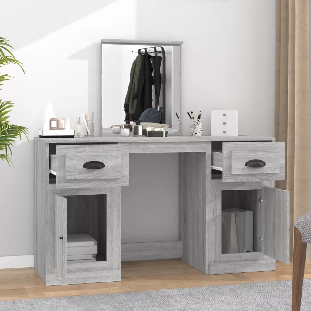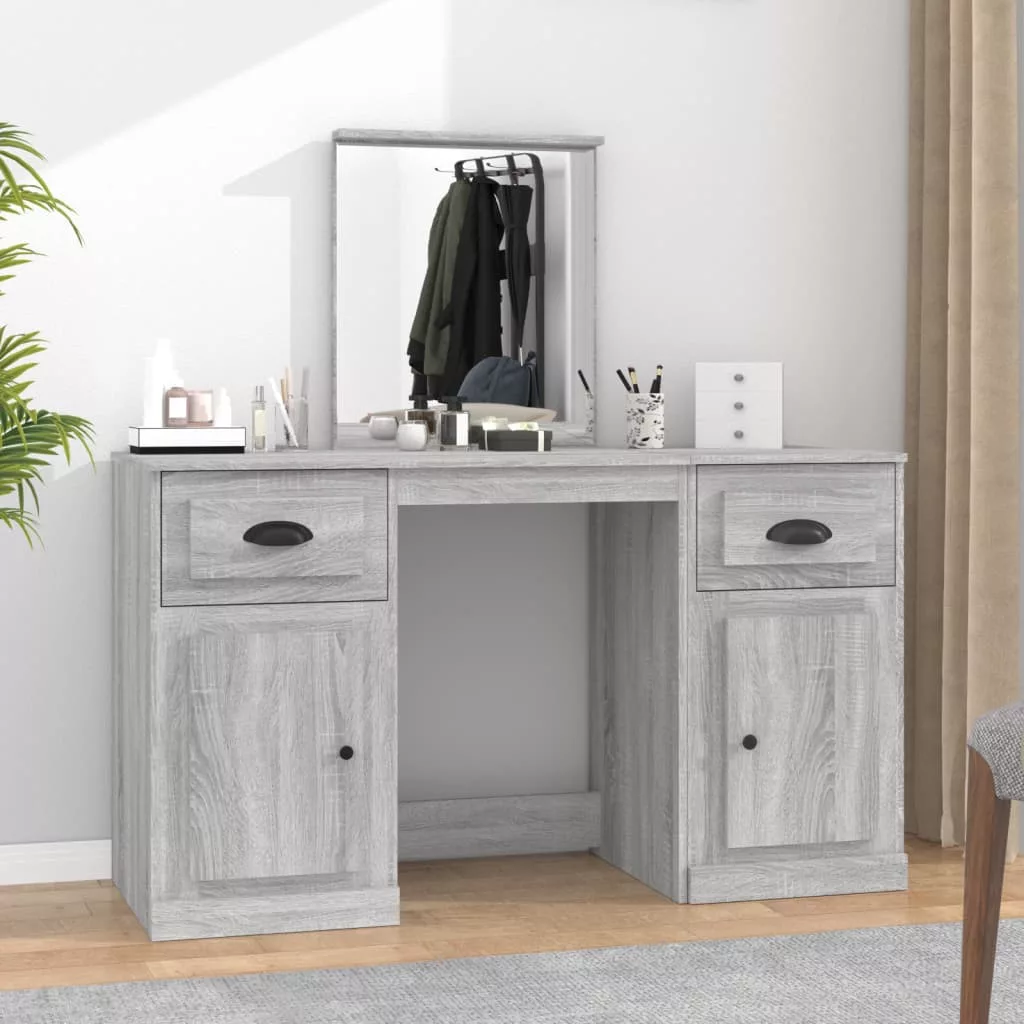 vidaXL szürke sonoma színű fésülködőasztal tükörrel 130x50x132,5 cm