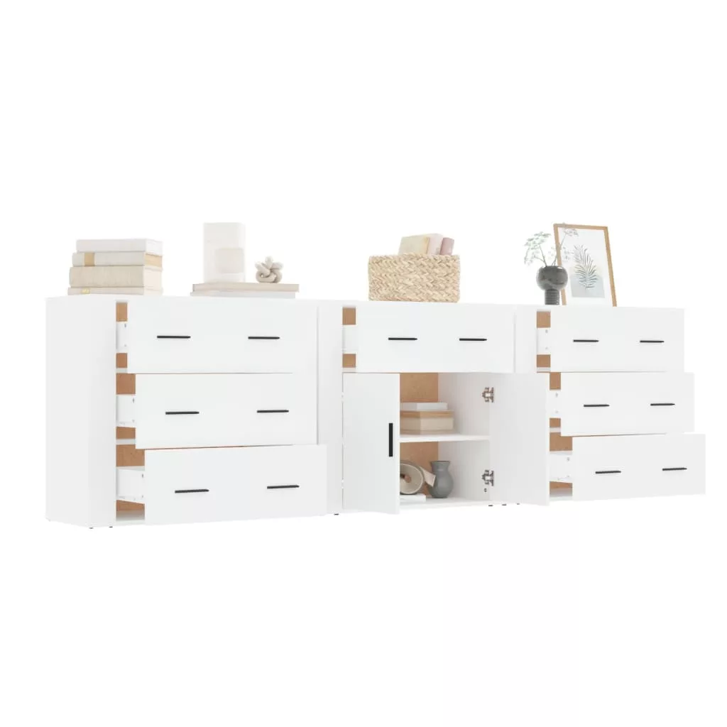 vidaXL 3 db fehér szerelt fa tálalószekrény