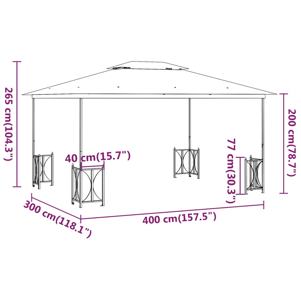 - Prémium anyag: A kerti pavilon porszórt acélvázzal készült. Ezért nagyon masszív és tartós. A tető 100% poliészterből készült PA bevonattal, amely vízálló és blokkolja a legkárosabb sugarakat.
