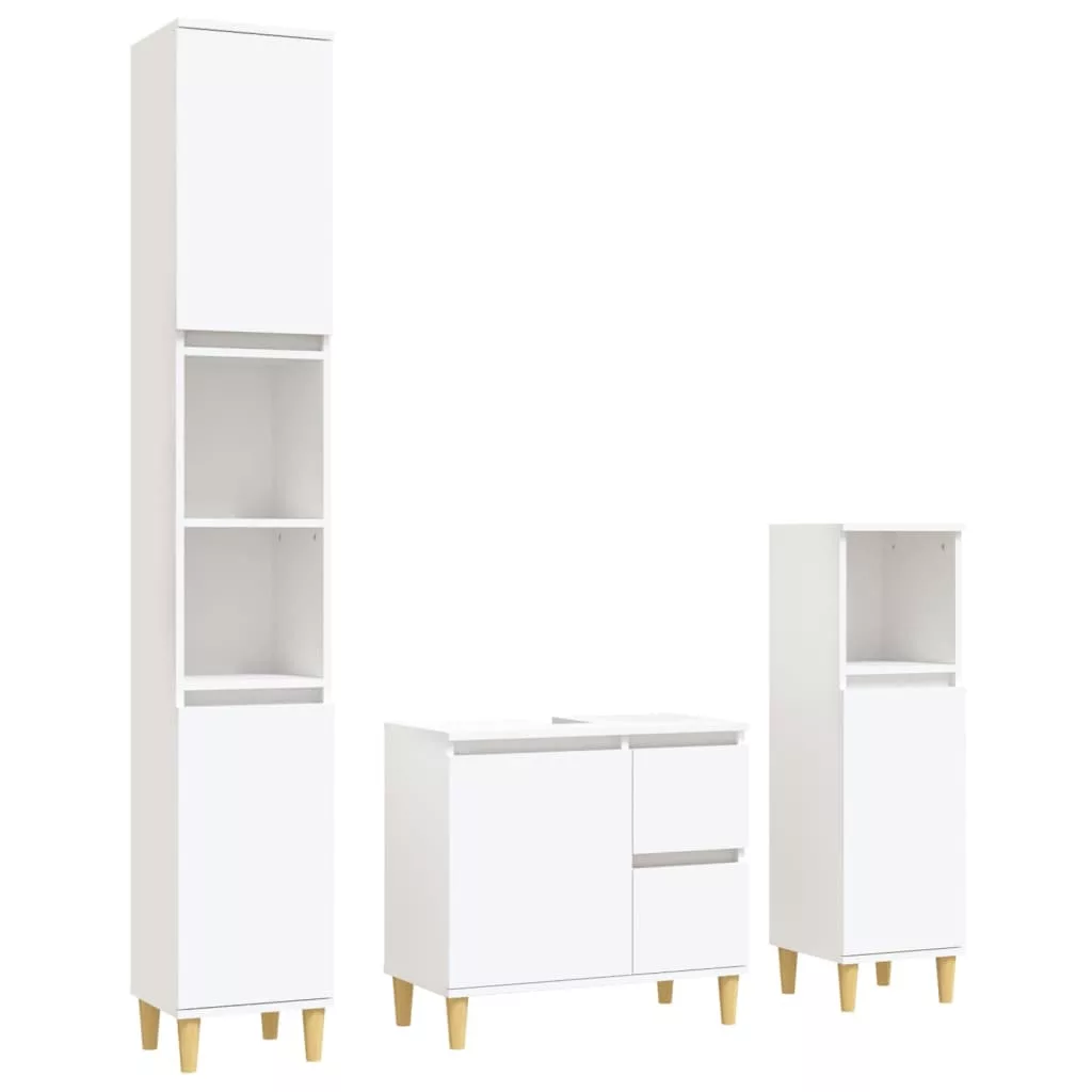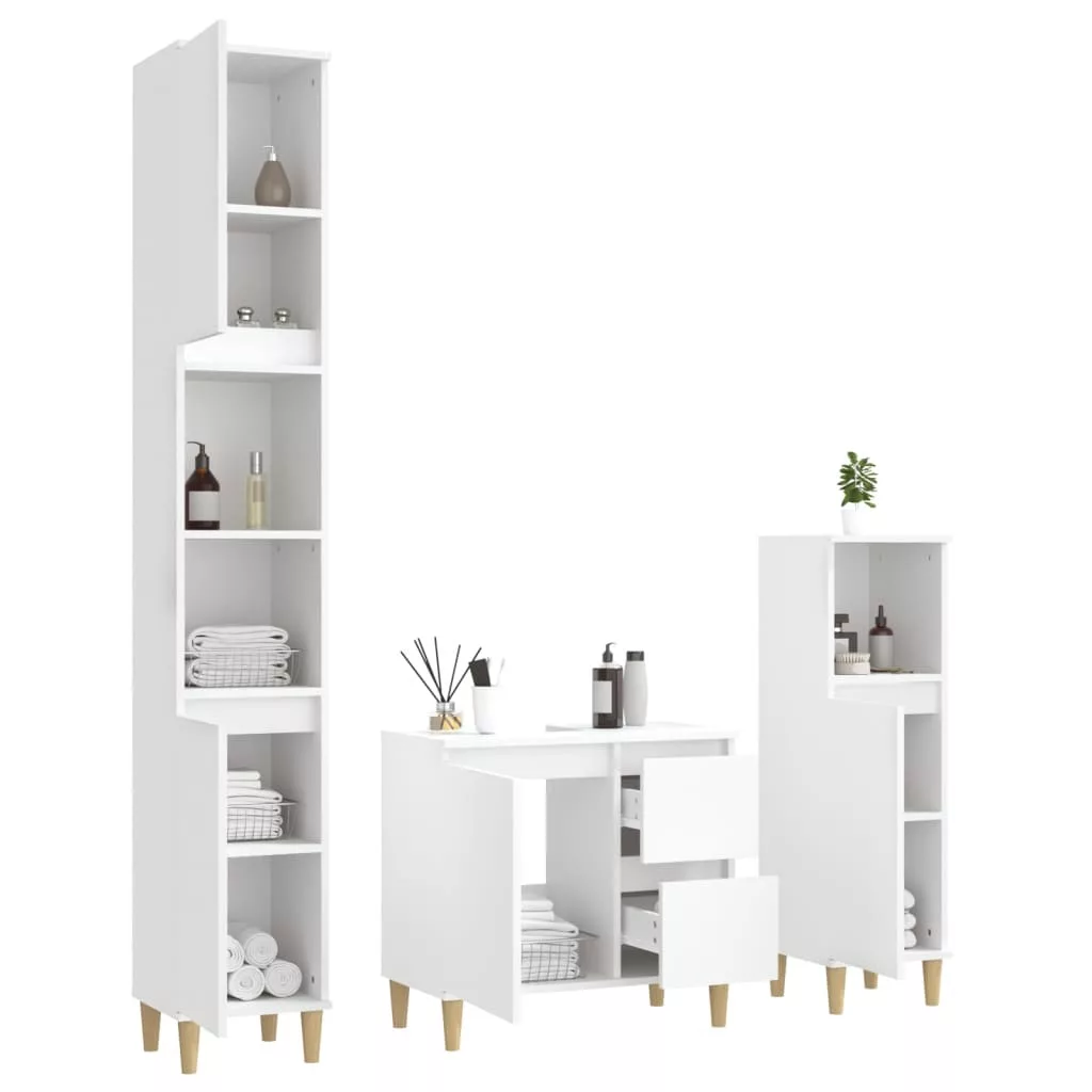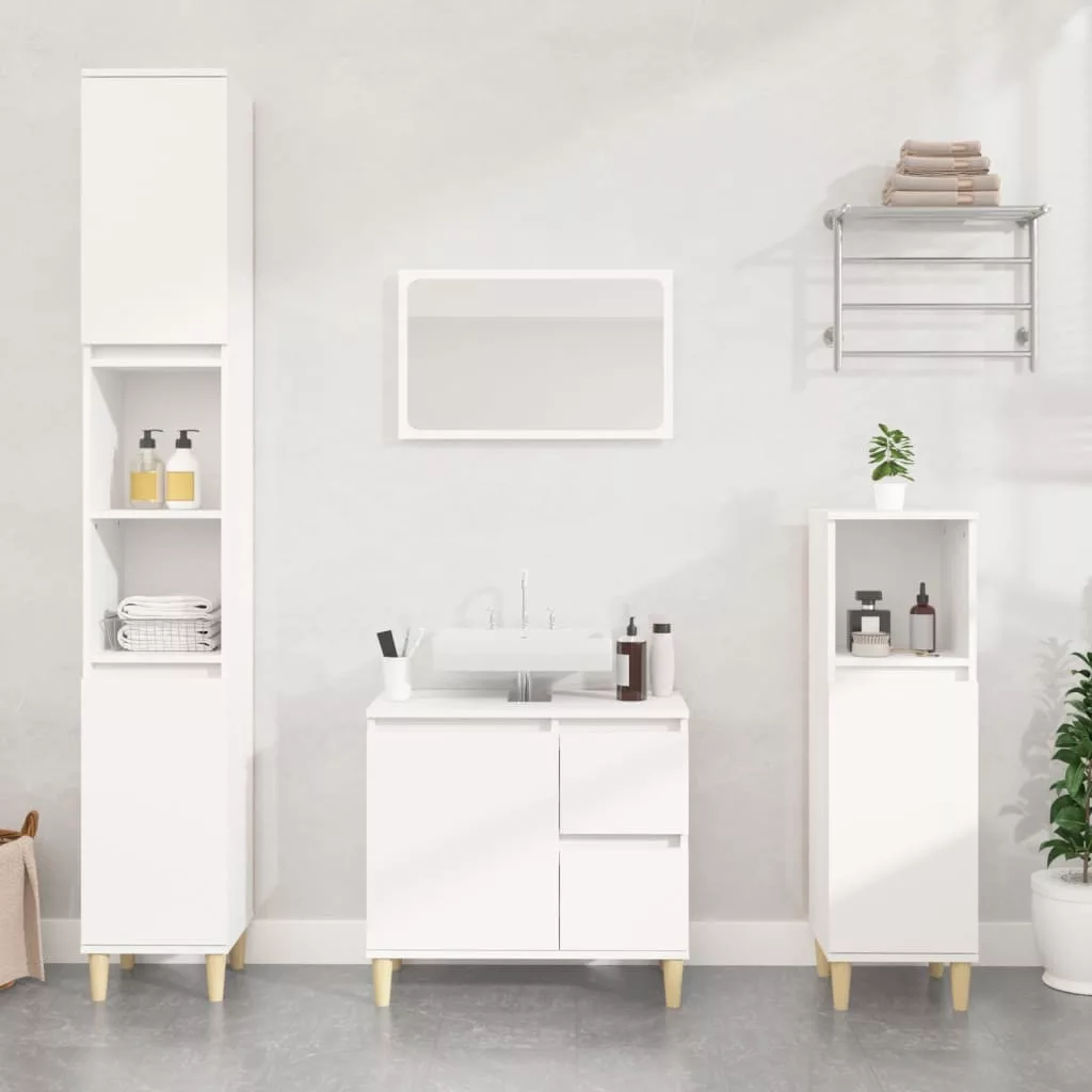 Ez a tetszetős, bőséges tárolóhellyel rendelkező fürdőszobaszekrény-garnitúra elegáns, mégis praktikus kialakítású.